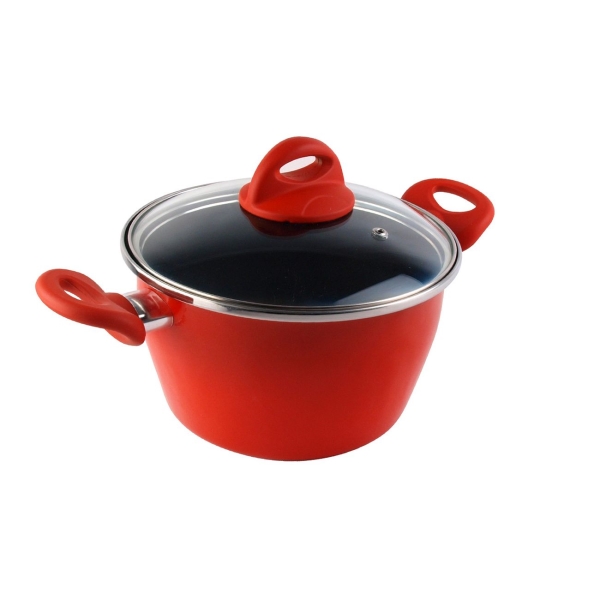 Кастрюля Vitrinor Pomodoro 24 с антипригарным покрытием выполнена в ярком цвете и не теряет привлекательного вида на протяжении длительного времени. Поверхность из стеклоэмали, закаленная при температуре 820°С, отличается устойчивостью к повреждениям и коррозии. В составе антипригарного покрытия отсутствует перфтороктановая кислота, что делает его полностью безопасным для здоровья. Объем модели составляет 6 л, а круглая форма оптимально подходит для варки супов, тушения мясного или овощного рагу, каш. Изготовленный из стали корпус с дном, усиленным ферромагнитным диском, рассчитан на все разновидности конфорок. Термоизолированные бакелитовые ручки не нагреваются. Очистку изделия можно производить в посудомоечной машине.