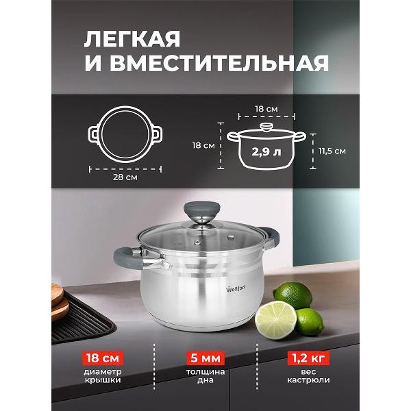 Вы можете купить Кастрюля WELLFORT 4000087194 в магазинах М.Видео по доступной цене. Кастрюля WELLFORT 4000087194: подробное описание, фото и отзывы реальных покупателей, характеристики, возможность скачать инструкции и подобрать аксессуары.