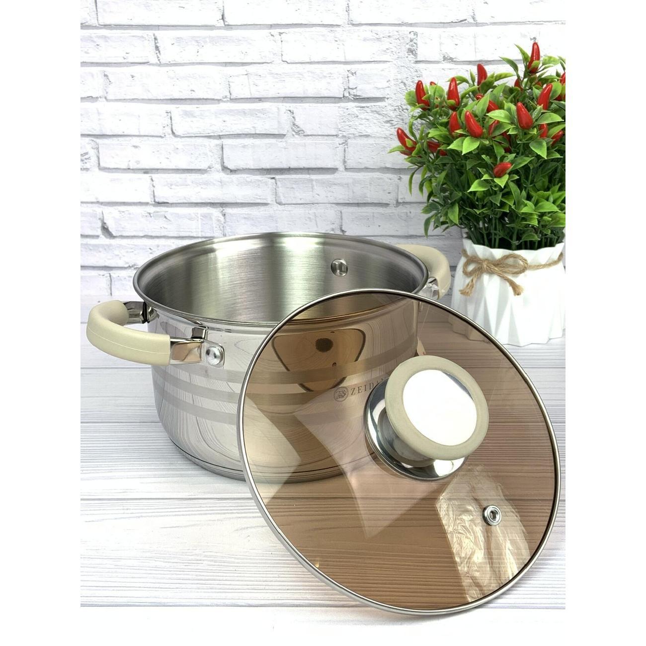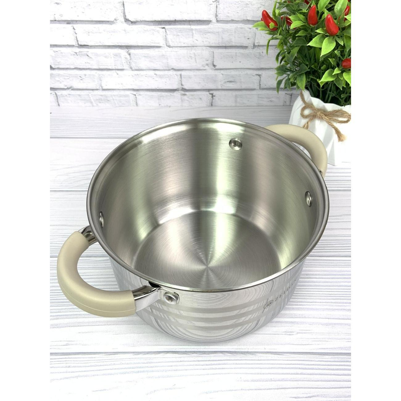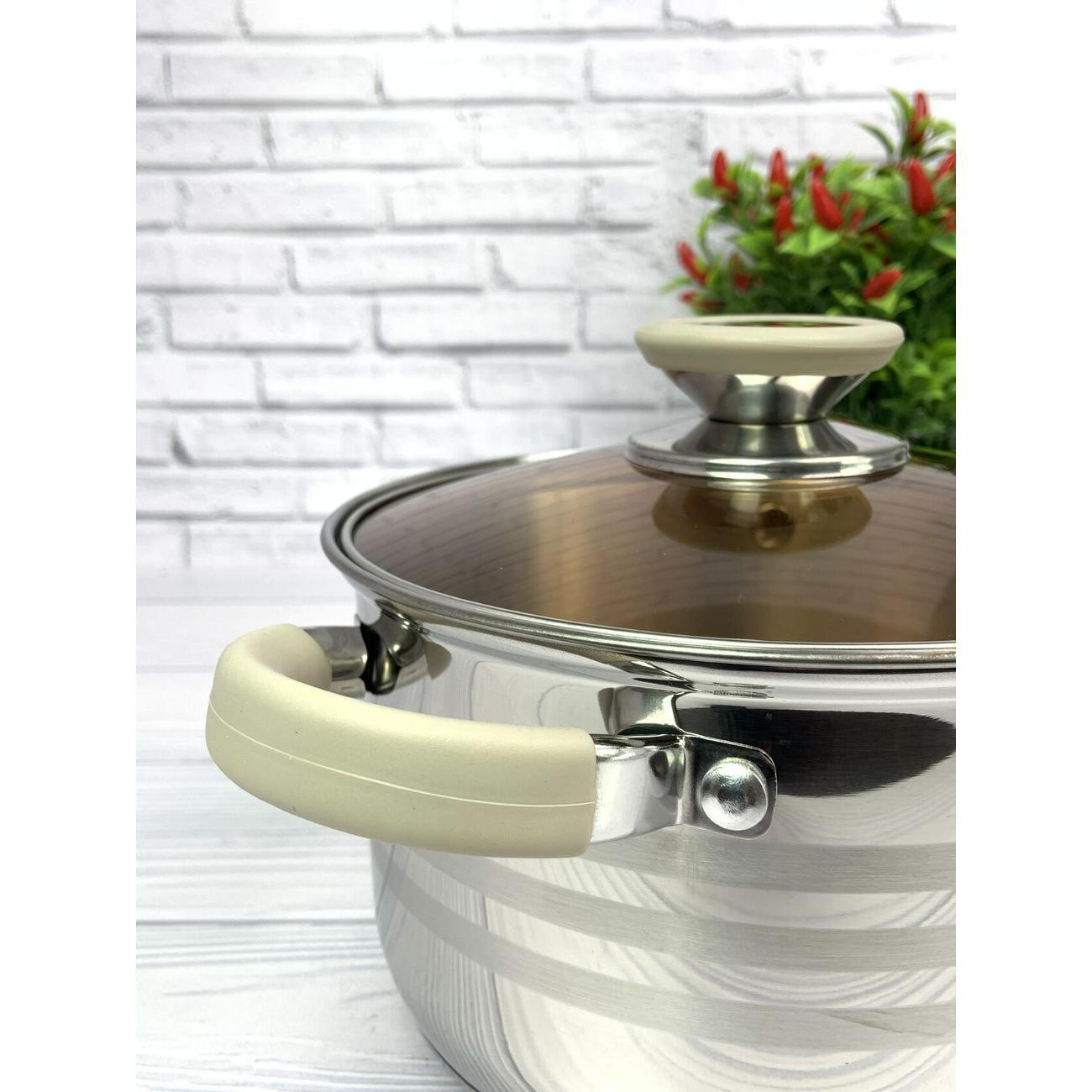 Кастрюля из нержавеющей стали объемом 2,1 литра (диаметр 16 см) со стеклянной крышкой – универсальное решение для любой кухни. Подходит как начинающим, так и опытным поварам; доступны различные литражи для сбора индивидуального набора.