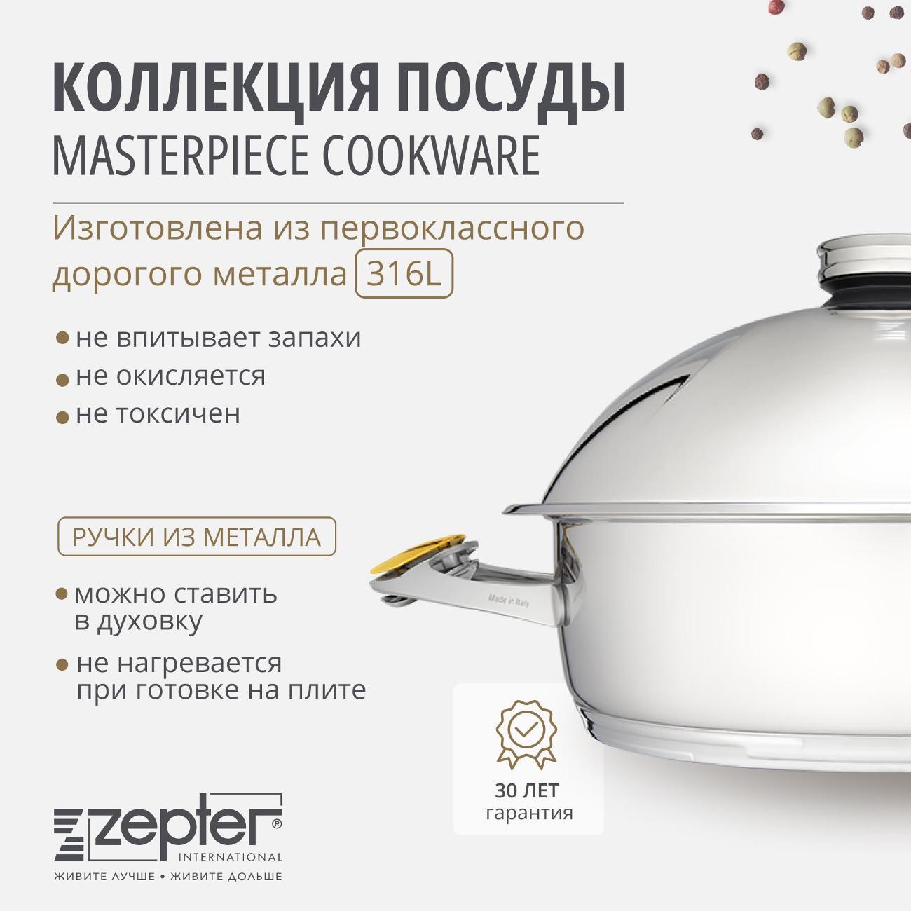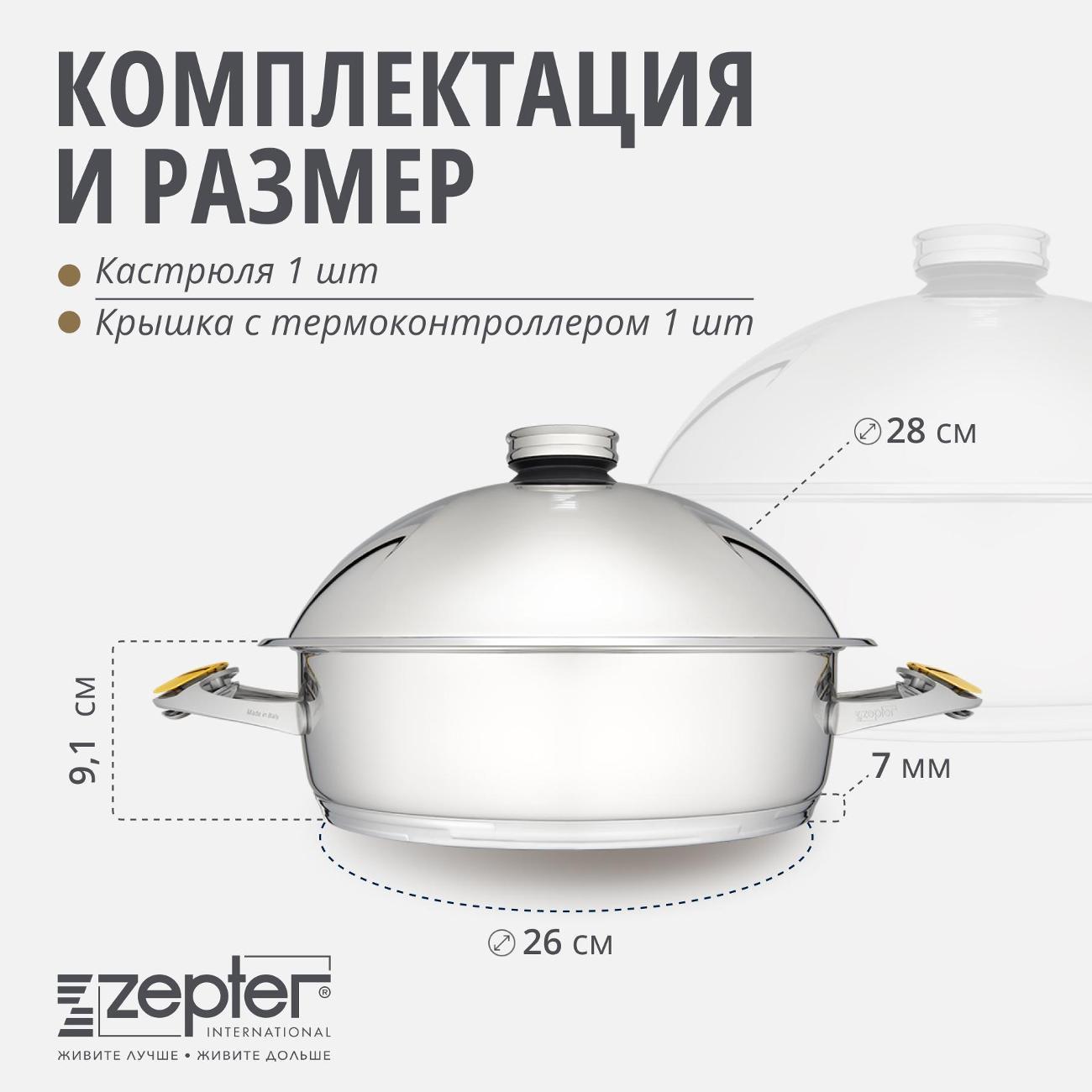 Вы можете купить Кастрюля Zepter Z-2850B в магазинах М.Видео по доступной цене. Кастрюля Zepter Z-2850B: подробное описание, фото и отзывы реальных покупателей, характеристики, возможность скачать инструкции и подобрать аксессуары.