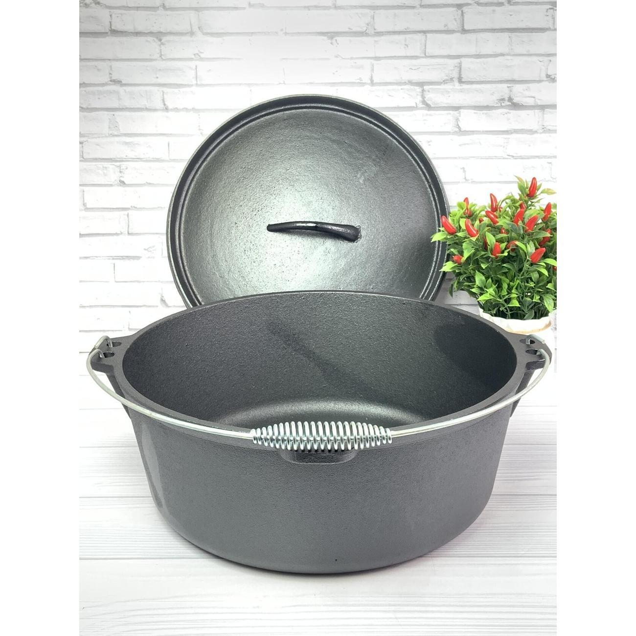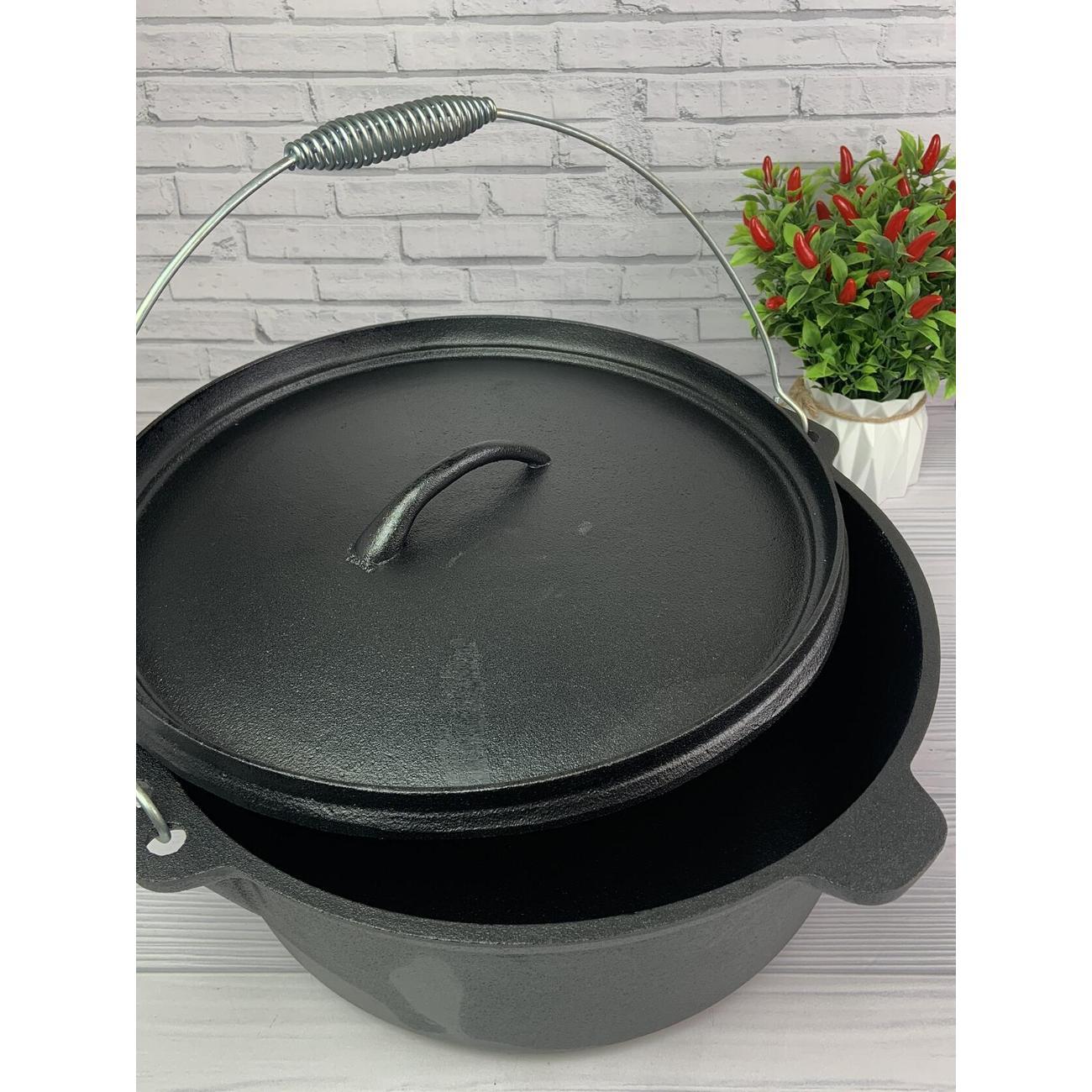 Казан 10 л можно использовать как в помещении (в печ и на плите), так и на открытом воздухе. Возьмите его с собой в поход или на рыбалку и наслаждайтесь вкусной едой на природе. Это отличная походная посуда или посуда для отдыха на природе, он подходит для кухни и дома, работает на индукционной плите. Чугунная посуда -шикарный подарок любимому мужчине и себе, она будет радовать Вас годами!