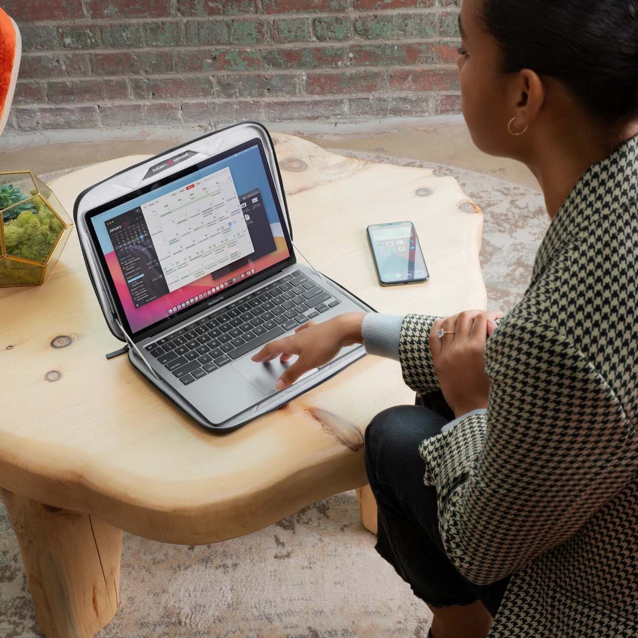 Twelve South SuitCase – практичный и стильный кейс для хранения и транспортировки ноутбука MacBook диагональю 13 дюймов. Эта модель выполнена из высококачественного текстиля. За счёт лаконичного дизайна чехол гармонично дополнит повседневный и деловой стиль одежды.