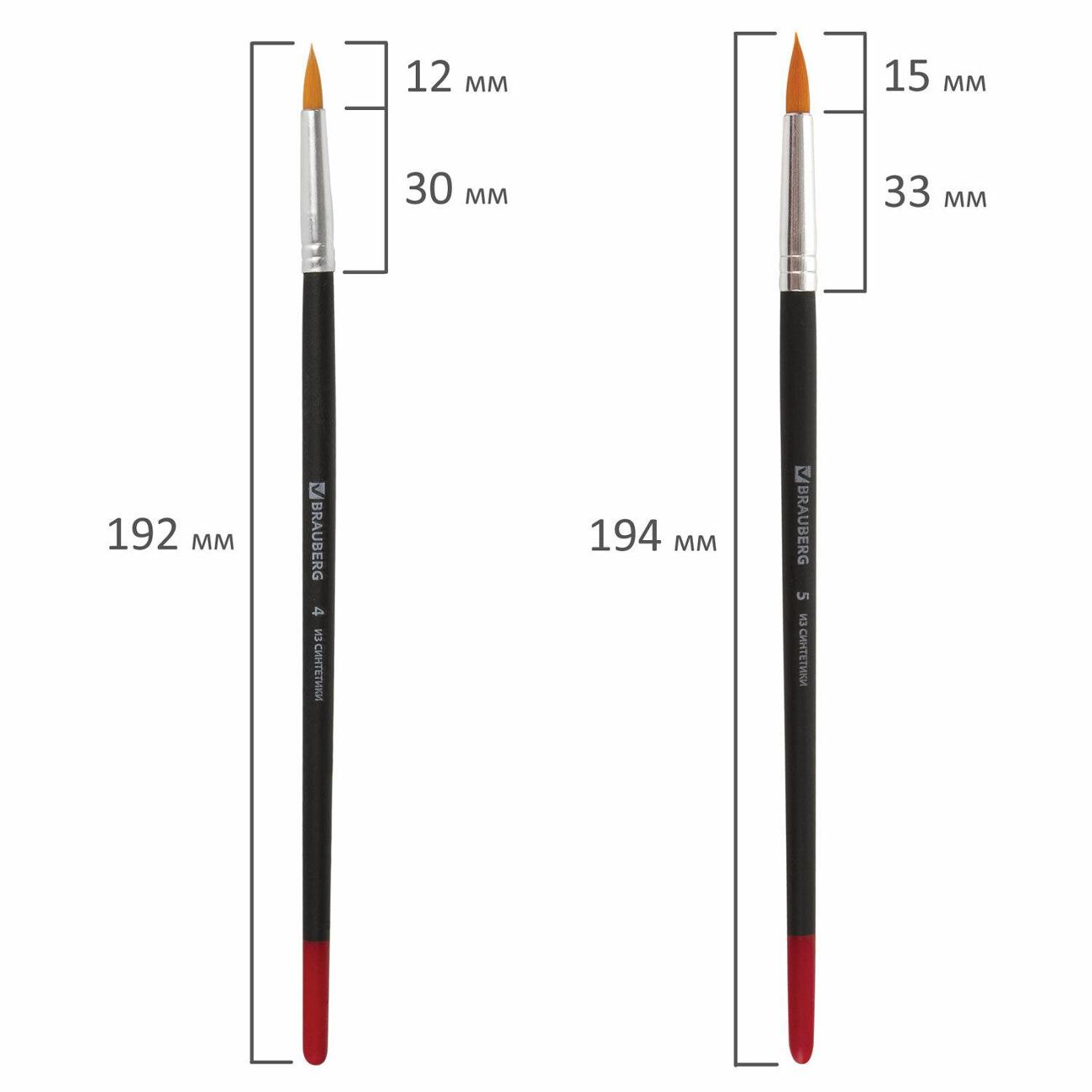 Кисти из синтетических волокон отлично впитывают и отдают краску, хорошо держат форму, долговечны и надежны. Кисти №1, 2, 3 подходят для проработки мелких деталей. Кисти №4 и 5 позволят прорисовывать более крупные детали и наносить широкие мазки и линии. Деревянную крашеную рукоятку кисти удобно держать в руке.