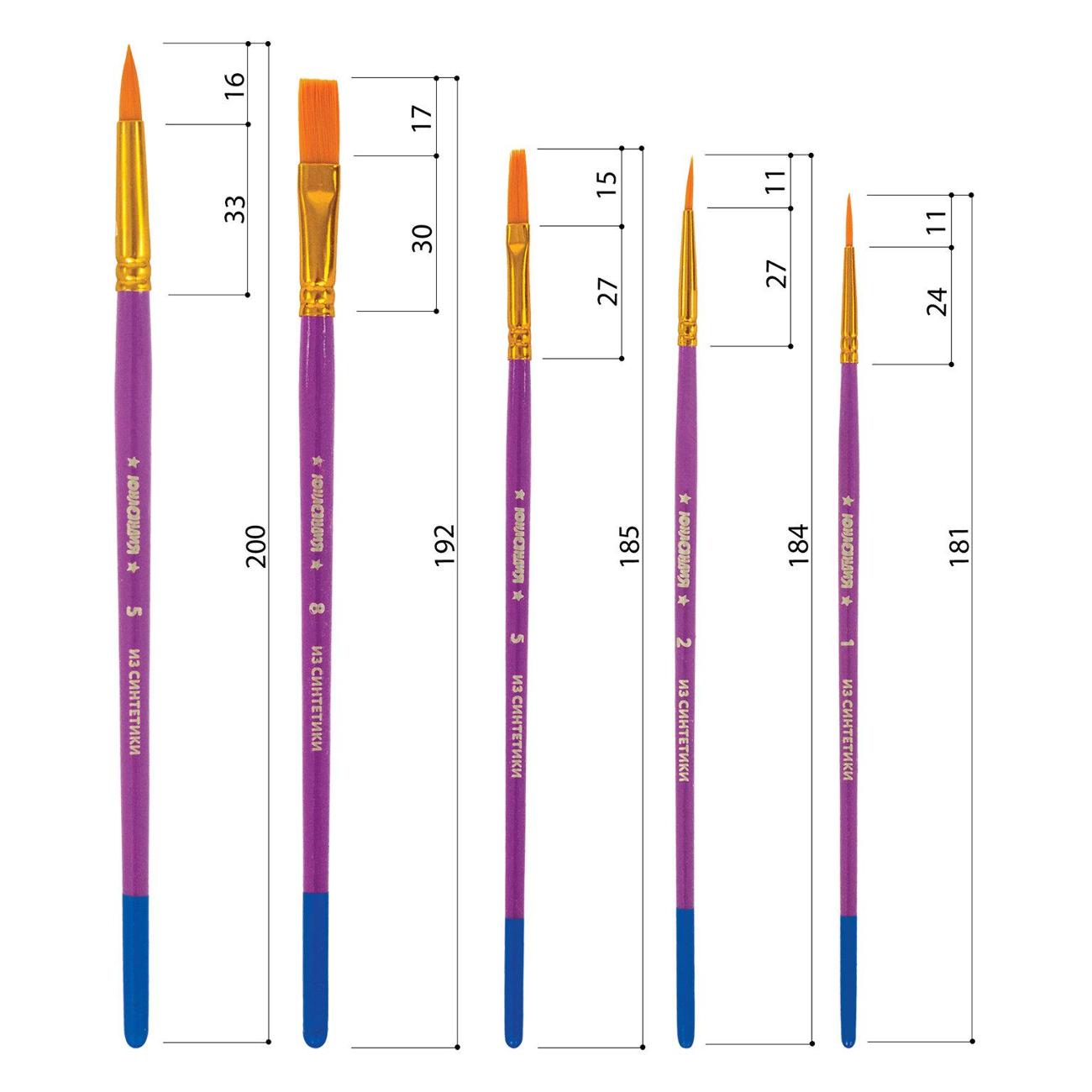 Кисти из высококачественного синтетического ворса отлично впитывают и отдают краску, хорошо держат форму, долговечны и надежны. Благодаря кистям №1 и 2 ребенку будет комфортно прорисовывать мелкие детали. Кисти № 5 и 8 и позволят делать более крупные мазки и линии. Рукоятку кисти удобно держать в руке.