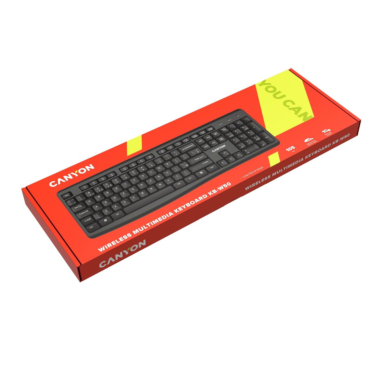 Canyon CNS-HKBW05-RU – это удобная и надёжная беспроводная клавиатура. Пластик, из которого выполнены корпус и кнопки, отвечает за долговечность устройства. За счёт компактного размера эта модель разместится даже на небольшом столе.