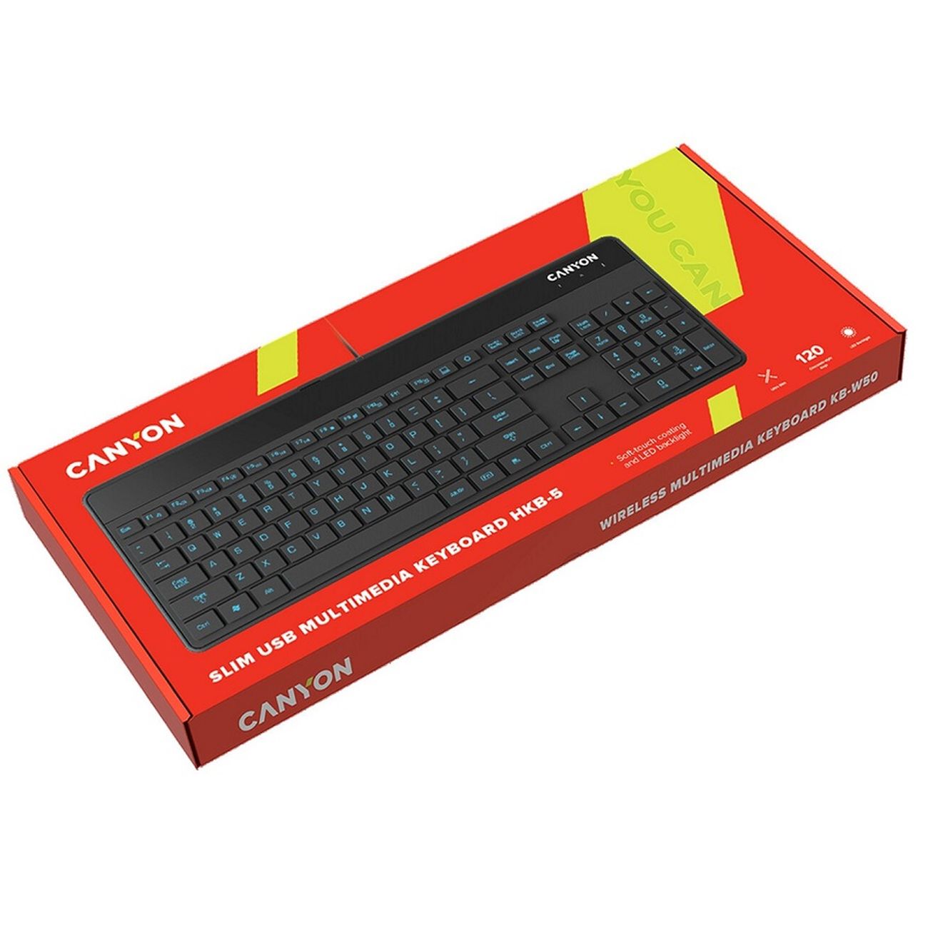 Клавиатура Canyon CNS-HKB5 – тонкая модель с низкопрофильными кнопками, которые делают длительную работу с компьютером очень комфортной. Она снабжена LED-подсветкой, значительно облегчающей набор текста в тёмное время суток.