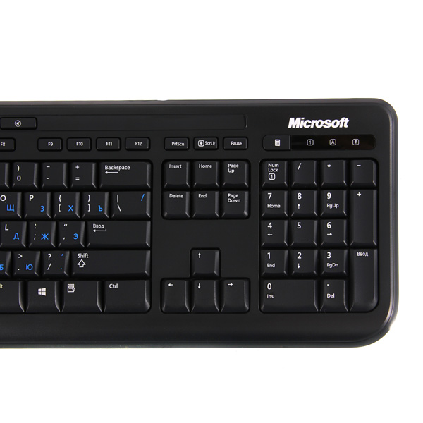 Хотел сначала взять Logitech K120, но, сравнив ее с другими имеющимися в магазине, Пришел к выводу, что Microsoft Wired 600 значительно лучше своих конкурентов. Во-первых, здесь разный цвет на клавишах у русских и английских букв. Во-вторых, её приятно держать в руках, качественный пластик, в т.ч. с обратной стороны клавиатуры (чего не скажешь про Logitech K120). В-третьих, из всех клавиатур на прилавке, у этой, наверное, самое тихое нажатие. Для себя недостатков не нашел. Для кого то маленькие функциональные клавиши минус, для кого то плюс. На макбуках они тоже маленькие и никому это не мешает. Скорее наоборот, разница в размере позволяет ориентироваться в темноте.