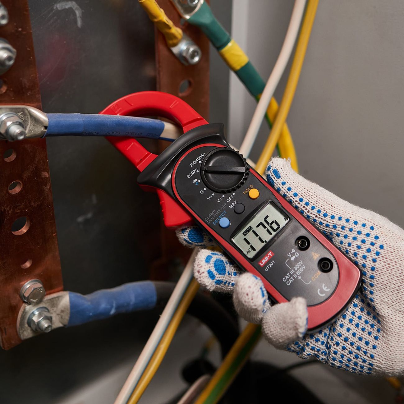 Клещи токовые UNI-T UT201 применяются для определения частотности сопротивления, переменного тока, стабильности напряжения и анализа цельности цепи. Обеспечение устройства энергией происходит при помощи двух батареек типа ААА. Размеры инструмента — 30 х 76 х 210 мм. Разрядность дисплея — 1999 отсчетов.