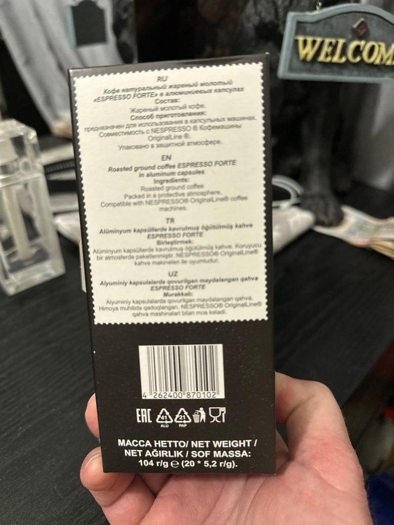 Кофе вкусный и ароматный , с лёгкой горчинкой, получается достаточно насыщенный напиток ,с хорошей густой пенкой. Капсулы изготовлены из пищевого алюминия, что позволяет лучше сохранять все полезные свойства и продлить срок хранения продукта, к кофеварке Неспрессо оригинал подходят прекрасно, упакованы в картонную коробочку по двадцать капсул в каждой коробке.
