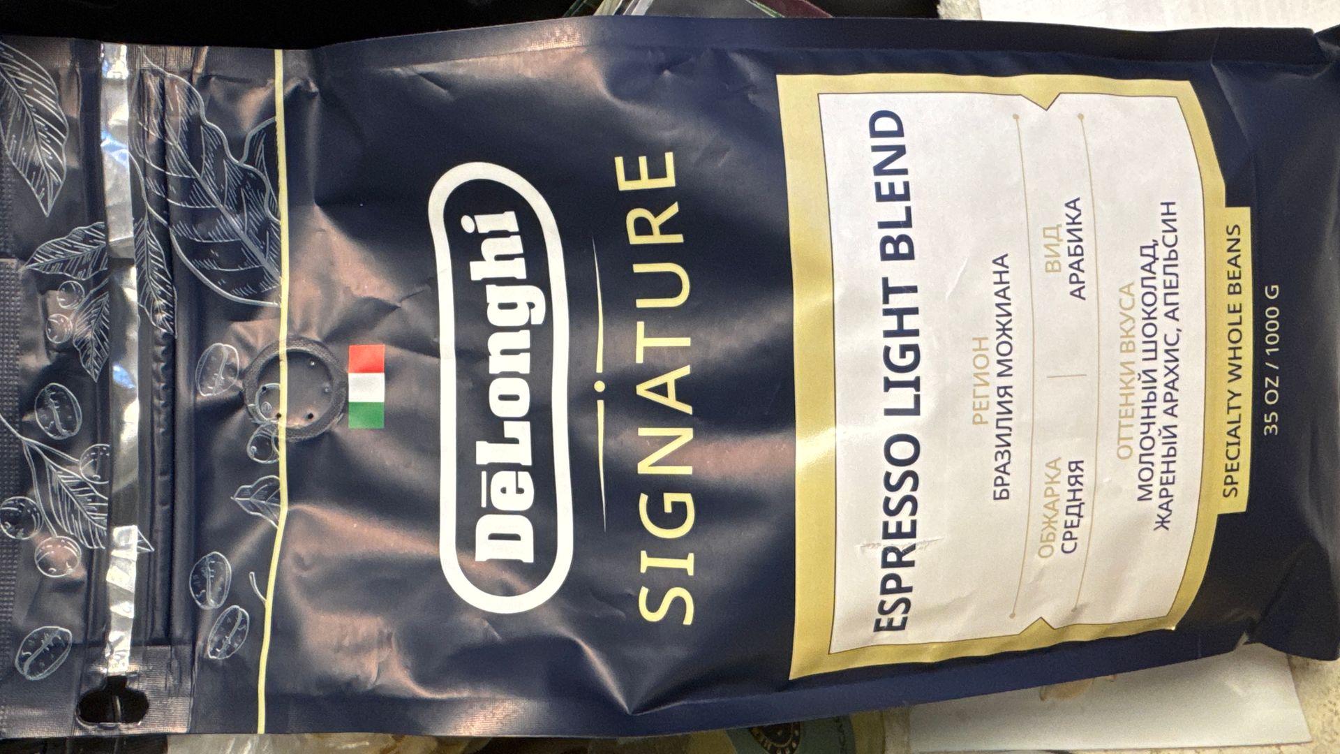 Сразу привлекла строгая, стильная упаковка с очень знакомой фирмой Delonghi. Через вакуумную упаковку чуть слышно просачивался запах хорошей кофейни. И правда, после помола кофе оказался ароматным, с хорошим, ярким, сбалансированным, терпким вкусом. Зёрна одного цвета, что говорит о равномерной обжарке. Идеально подошел для кофемашины, думаю в турке будет не хуже.
