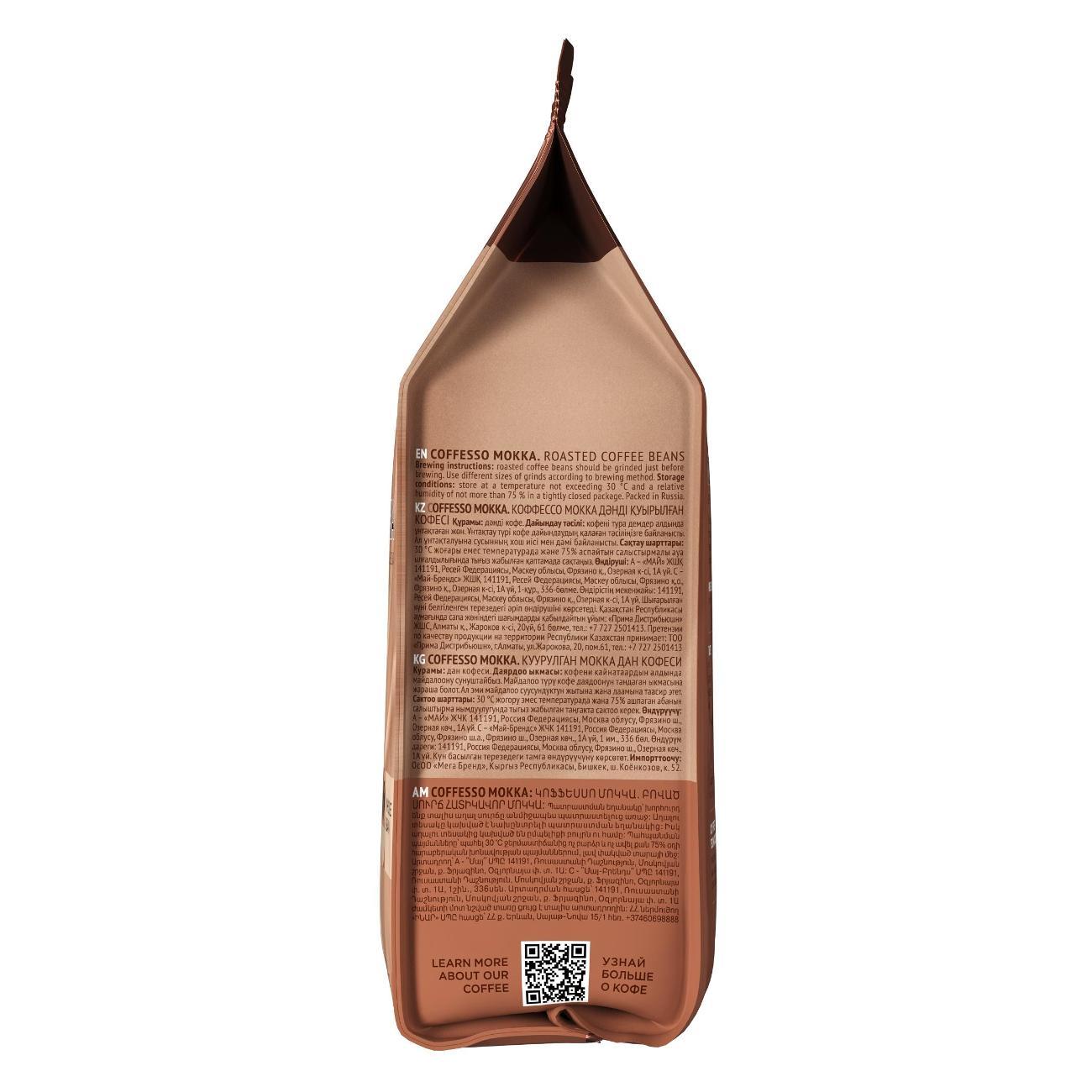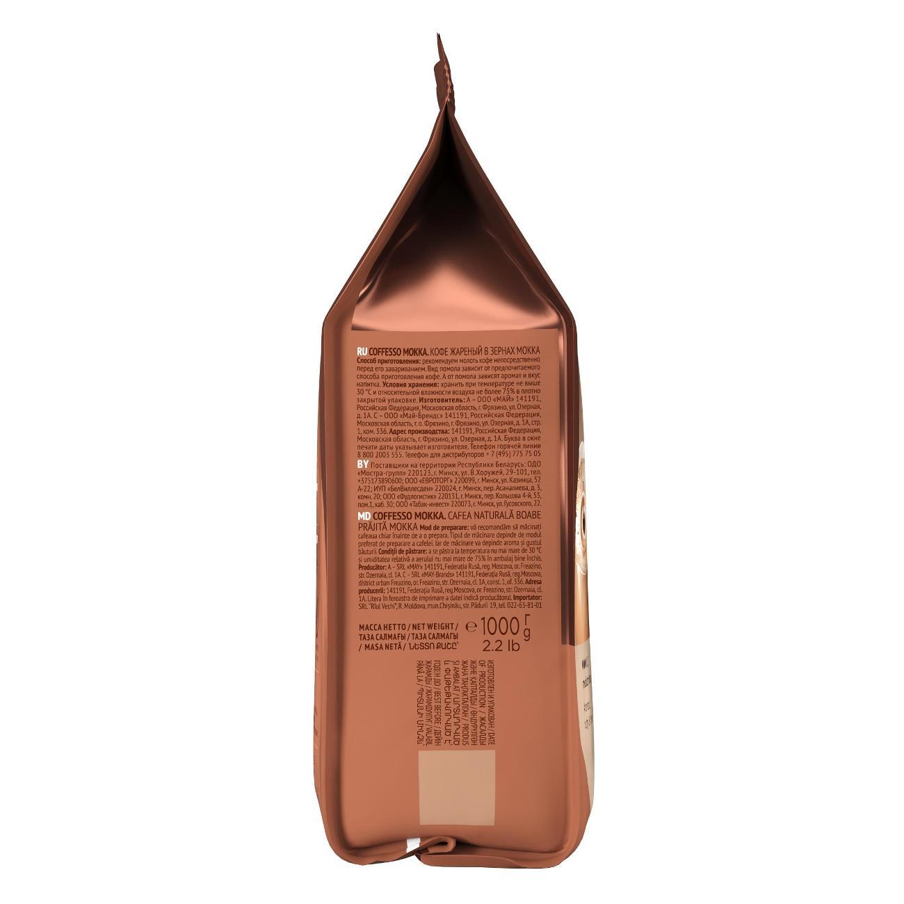 Почувствуйте великолепие кофе Coffesso Mokka – настоящее сокровище для ценителей кофе. Этот зерновой кофе робуста представляет собой совершенство вкуса и аромата, идеально подходящее для приготовления как классического американо, так и насыщенного эспрессо, а также для кофейных напитков с молоком.С кофе в зернах 1 кг от Кофессо, вы получаете не просто кофе, а целый мир наслаждения и вдохновения. Каждое зерно Мокка тщательно отобрано и обработано, чтобы обеспечить вас глубоким, богатым вкусом с характерной кофейной горчинкой и ореховыми нотками, которая придает напитку неповторимую насыщенность и глубину.Пусть каждый ваш кофейный ритуал будет полон вкусовых открытий и удовольствия. Подходит для любого типа кофемашин, этот кофе превратит обыденные моменты в особенные.Кофе подарочный от Coffesso – это идеальное решение для тех, кто хочет поделиться своей страстью к кофе с близкими. Упаковка в 1 кг идеально подойдет в качестве подарка, позволяя вашим друзьям и близким наслаждаться каждым глотком этого изысканного напитка. Coffesso Mokka – это больше, чем просто кофе. Это возможность каждое утро начинать с ноток вдохновения и заряда бодрости, которые необходимы для успешного и продуктивного дня. Вкус Mokka от Coffesso оживит ваши чувства и придаст сил для новых свершений.Выбирая кофе Mokka от Coffesso, вы выбираете не просто высококачественный продукт, но и исключительное кофейное наслаждение, которое доставит вам радость с каждой чашкой. Наслаждайтесь каждым моментом вместе с Mokka от Coffesso и открывайте для себя новые горизонты вкуса и аромата.