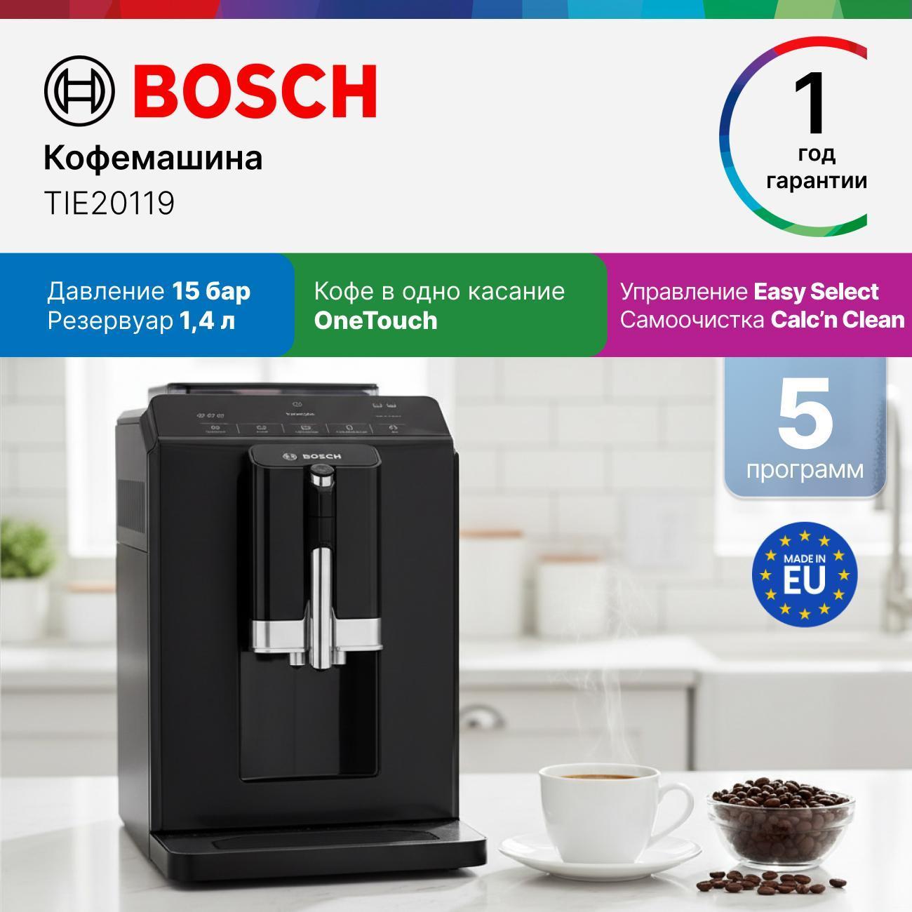Вы можете купить Кофемашина автоматическая Bosch TIE20119 в магазинах М.Видео по доступной цене. Кофемашина автоматическая Bosch TIE20119: подробное описание, фото и отзывы реальных покупателей, характеристики, возможность скачать инструкции и подобрать аксессуары.