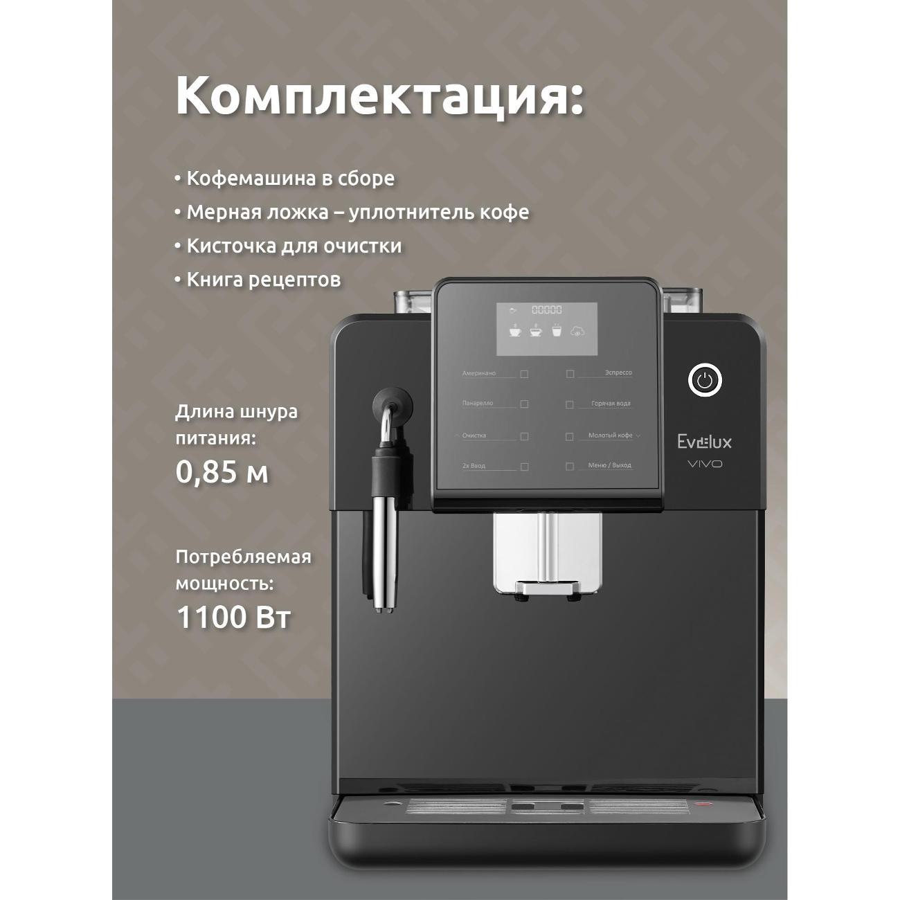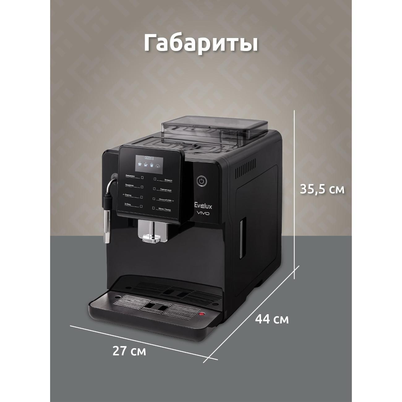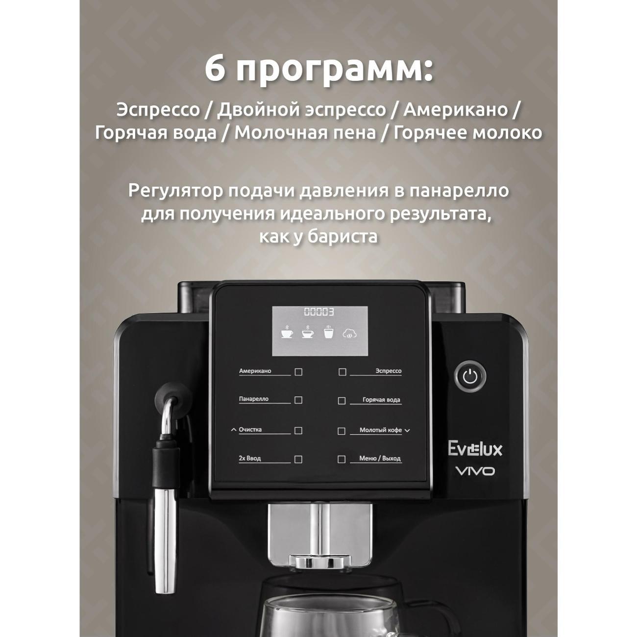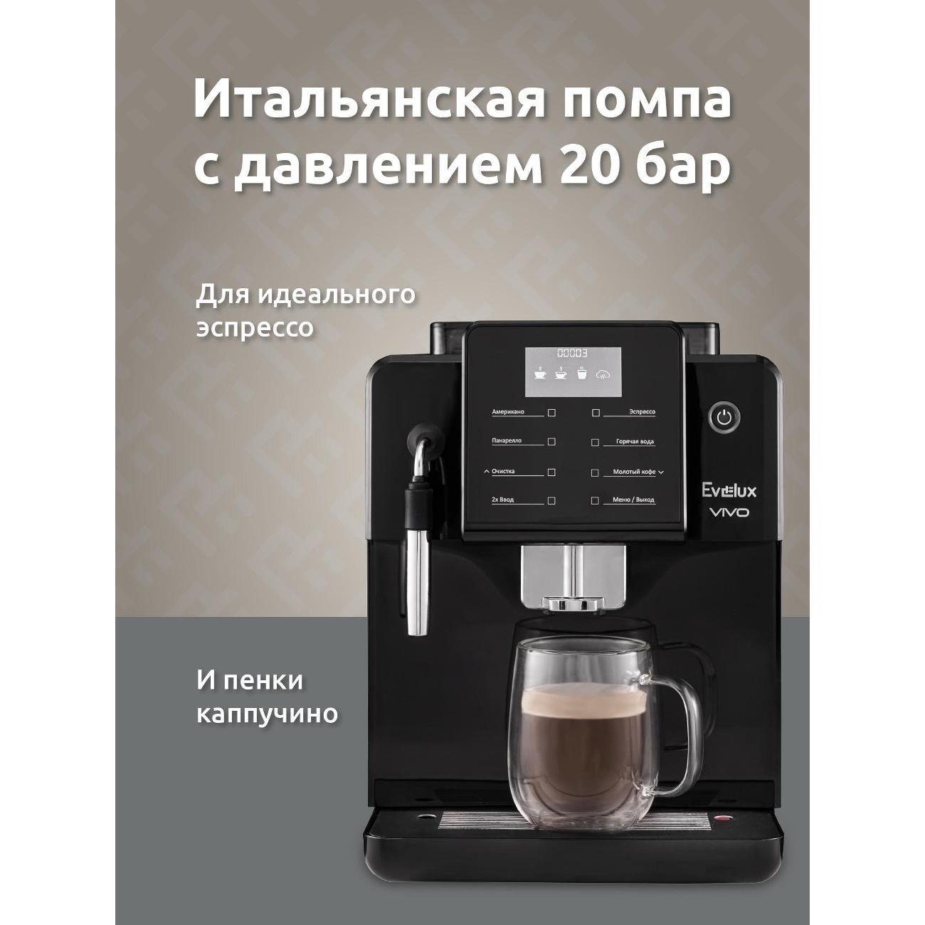 Вы можете купить Кофемашина автоматическая Evelux EACM 2007 Vivo в магазинах М.Видео по доступной цене. Кофемашина автоматическая Evelux EACM 2007 Vivo: подробное описание, фото и отзывы реальных покупателей, характеристики, возможность скачать инструкции и подобрать аксессуары.