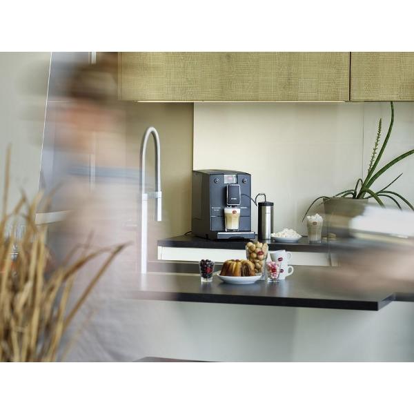Выбирала, наверно, полгода. Остановилась на этой моделе. Заинтересовало тем ,что несколько вариантов молочных кофейных напитков (каручино, латтэ), безмолочных ещё больше ( американо, эспрессо и т.д). Автоматическая промывка системы, капучинатора. Она умница: включаешь её, она сама промывает перед началом работы и в конце. Можно в настройках все под себя настроить, как и когда мыть, рецепты кофе( сколько пены , молока, кофе). Очень проста в работе, легко понять что для чего.