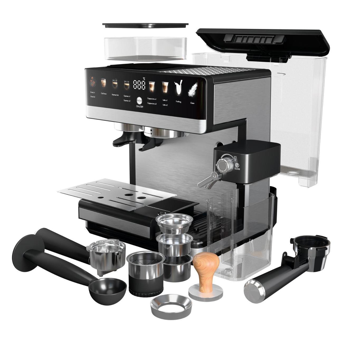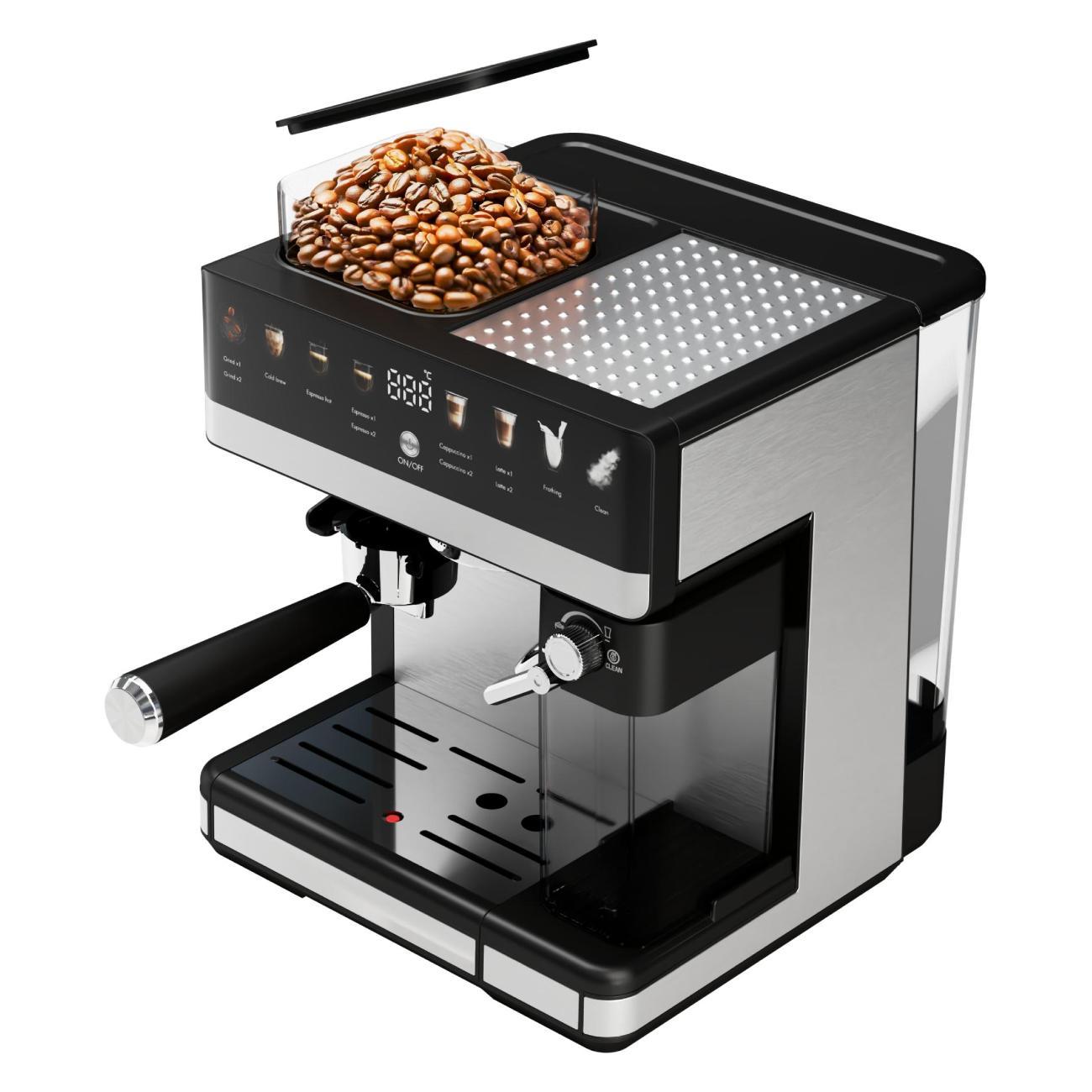 С этой кофемашиной автоматической зерновой с капучинатором и кофемолкой вы почувствуете себя настоящим бариста у себя дома. Это не просто кофе аппарат, а универсальное решение "всё в одном" для создания идеального эспрессо, капучино или латте. Мощная и стильная, она подойдёт как для домашнего использования, так и как кофе машина для кафе.Устройство сочетает в себе возможности кофемашины зерновой с кофемолкой, кофемашины рожковой с капучинатором автоматическим и кофемашины электрической с автоотключением. Поддерживает молотый, зерновой кофе, капсулы и чалды — настоящий функционал кофемашины 3 в 1. Благодаря встроенному автоматическому капучинатору, вы сможете создавать плотную молочную пену одним нажатием — как в профессиональной кофейнеЭта кофемашина автоматическая с капучинатором имеет резервуар для воды 2600 мл, контейнер для молока 500 мл, мощность 1350 Вт. Компактные размеры — 36×30×30 см — позволяют разместить её на любой кухне. Управление интуитивно понятное, корпус выполнен в современном дизайне. Кофеварки рожковая с капучинатором автоматическим подходит для зернового и молотого кофе, а также совместимо с капсулами. Это отличная кофемашина зерновая для дома, объединяющая всё лучшее от капсульных, рожковых и автоматических моделей.