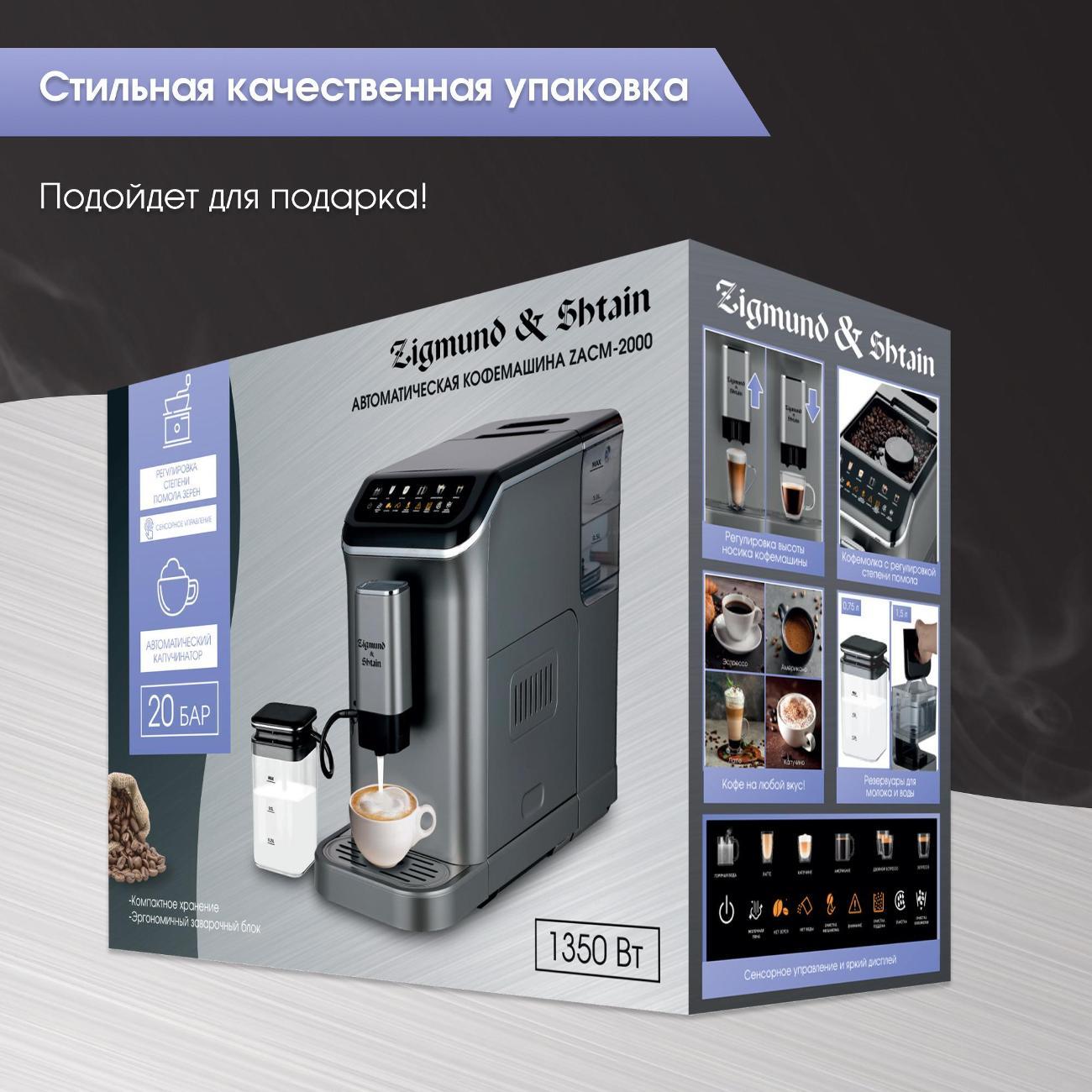 Вы можете купить Кофемашина автоматическая Zigmund & Shtain ZACM-2000 в магазинах М.Видео по доступной цене. Кофемашина автоматическая Zigmund & Shtain ZACM-2000: подробное описание, фото и отзывы реальных покупателей, характеристики, возможность скачать инструкции и подобрать аксессуары.