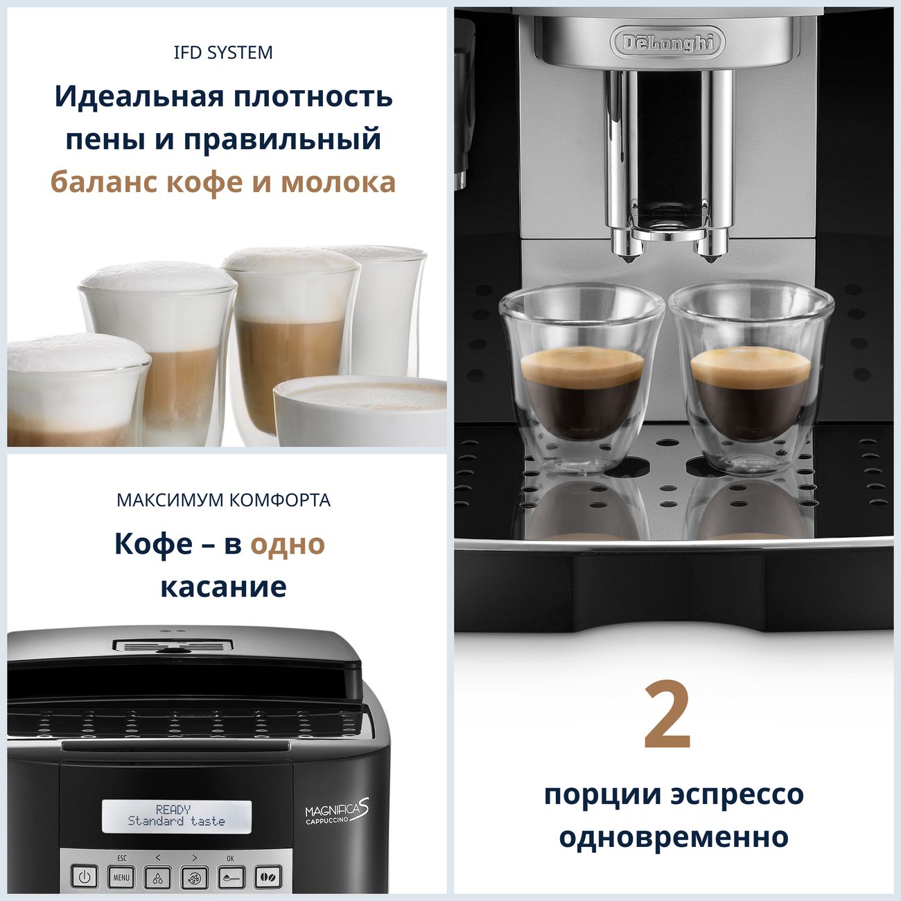 Так вот! Я пользуюсь кофемашиной, точнее кофемашинами уже лет 5-6. И все их можно разделить на ценовые сегменты, точнее на классы, как авто. Так вот данная модель от Делонги 22,360 является одним из лучших в своем классе, как по цене, так и по функционалу! Только в этой машине есть настройка плотности молочной пенки, очистка капучинатора, полностью текстовое меню, со всевозможными настройками на русском языке, кофемалка с 13-ю степенями помола и так далее.