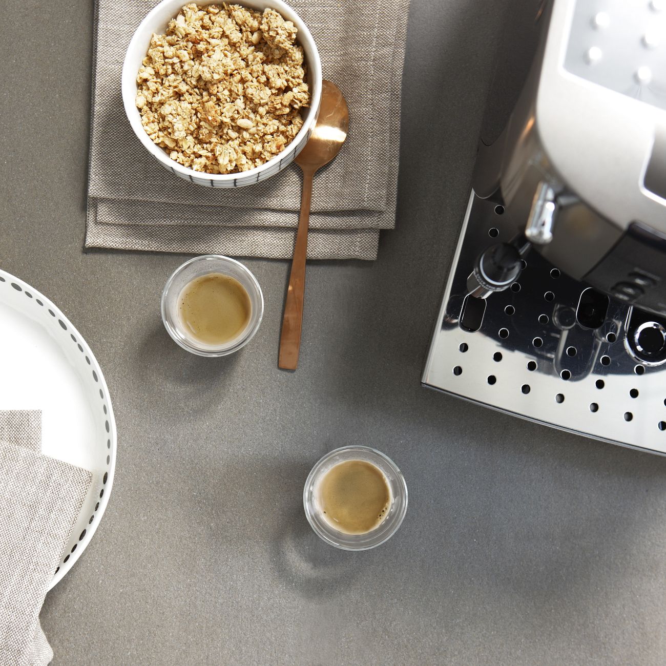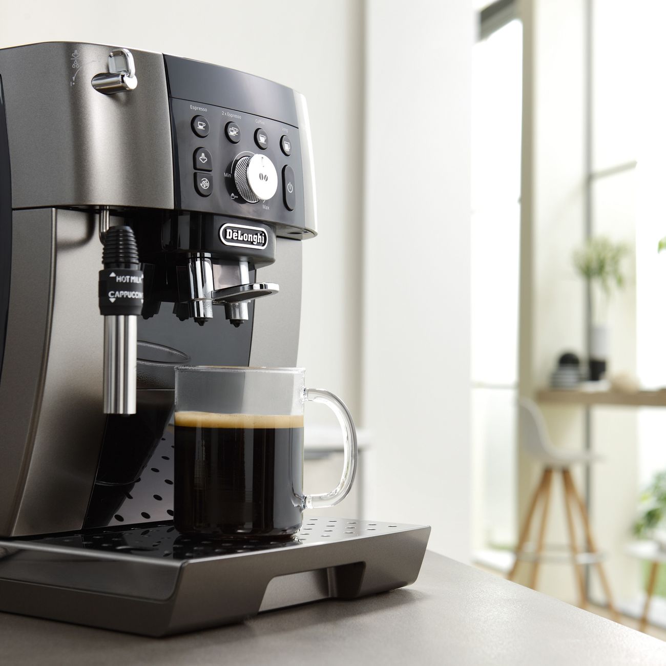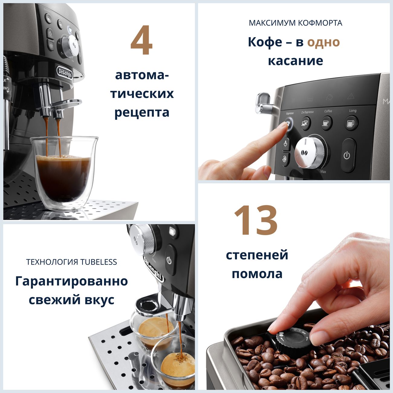 В эксплуатации 2 месяца. Так как это у меня это первая кофемашина, то к выбору подходил основательно, перечитав много отзывов и мнений. Думаю что не ошибся остановившись на этой модели. Кофе варит действительно хороший, но как Вы сами понимаете, соответственно и сам кофе должен быть Хорошим. Пользуюсь в основном зерновым кофе, но есть функция приготовления и молотого кофе, я считаю как резервная, так как приготовить можно только экспрессо или LONG из только одной мерной ложки ( в комплекте) молотого кофе. Может кому-то будет полезным совет из личного опыта: был прецедент, когда машина отказалась готовить из молотого кофе, при этом световые индикаторы не горели, а кофе просто высыпался в контейнер для сбора гущи. "Вылечилось" перезагрузкой машины с помощью главного выключателя на задней панели. Капучинатор работает мощно получается замечательное капучино с воздушной пеной, ничем не хуже чем в профессиональных кофейнях.Прежде чем запустить машину в работу не поленитесь изучить правила эксплуатации, настройте под себя (емкость, температуру, крепость, степень помола кофе) готовьте и наслаждайтесь . Фото загрузить не получилось.