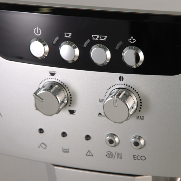 1)В ней есть что надо за такую цену. 2)Все манипуляции с чисткой, заправкой, обслуживание производятся спереди, поэтому можно устанавливать в ряд с другой техникой микроволновкой, комбайном и т.д., большой бак для воды. 3)Пенку взбивает очень плотную, молоко 3,5% Милок увеличивается раза в три. 4)кофе крепкий, пришлось уменьшить регулировку крепости, поставив дозатор посередине. 5)Удобный столик для чашек сверху. 6)Настоящая итальянка. Упакован в двойной коробке, внешняя - вся итальянская с их наклейками, штрих-кодами и т.д., видимо только с дороги. 7)Думаю, ещё найду. Недостатки как таковых пока не заметил, вот только нагрев столика особо не почувствовал. Ну и если не брать в расчёт неправильное описание, устаревшая фотография на оф.сайте, Яндексе да и во всей сети. Долго выбирал, когда остановился на Делонге, начал метаться по моделям, их огромный выбор. Потратил два дня, в итоге выбрал эту. При звонке в интернет-магазин мне объяснили,что оказывается все модели до 30000 рублей одинаковые,разница только в дизайне и наличие дисплея. Информация на оф.сайте устаревшая, включая инструкции и фотографии блуждающие по интернету. На самом деле на этой модели вместо кнопки с краником - кнопка пар как и у всех(в процессе выбора меня этот краник отпугивал отсутствием функции быстрый пар, что и до сих пор подтверждается на сайте), а вместо кнопки ложка-появилась кнопка ECO. Таким образом машина сравнялась по функциям со старшими собратьями, вышла,т.с., на современный уровень. Нормальный быстрый пар, программирование времени отключения, вопреки описанию на оф.сайте, появился выключатель на задней стенке. Инструкция в комплекте правильная, а не та устаревшая, что с оф. сайта, если хотите почитать правильную, качайте от более старшей модели, все кнопки и функции одни и те же, машины одинаковые. Очень советую покупать, красивая,компактная,удобная и стильная модель с функциями как у дорогих моделей. P/S/ В инструкции понравилась фраза в самом начале Уделите ПАРУ МИНУТ на чтение