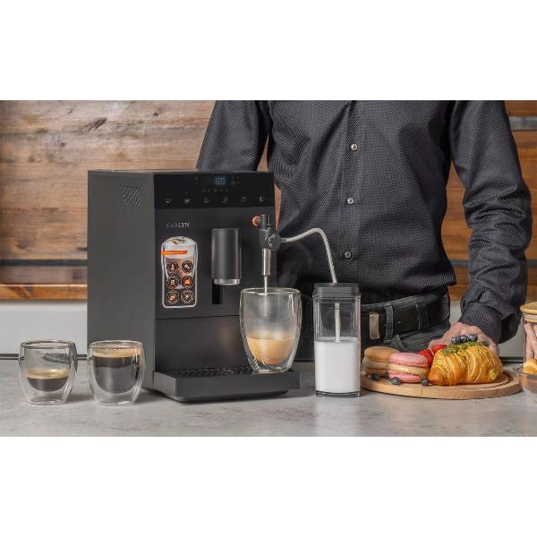 Кофемашина в принципе хорошая,но есть огромное большое "НО",кофемашина пришла с неработающим датчиком подачи воды.Соответственно,чтобы сварить кофе нужно было провести ритуал "танцев с бубнами",дабы перестал пищать датчик подачи воды при полном резервуаре с водой.Соответственно связавшись с техподдержкой нам было рекомендовано отвезти кофемашину в сервисный центр,так для информации кофемашина побыла у нас дома два полных дня, на третий день мы ее отвезли в сервисный центр,где нам обозначили срок диагностики и ремонта 45 дней.Соответственно меня такой расклад не очень устраивает,как бы я купила новую технику и далеко не дешёвую (сделала называется подарок мужу),я опять позвонила на горячую линию,ответ был таков,что 45 дней это максимальный срок,вам ее отдадут быстрее.По истечении двух недель звоню в сервисный центр,а мне говорят,мы заказали запчасть,ждем ответа от Garlyn,звоню в Garlyn внятного ответа я так и не получила,но со слов сотрудника сервисного центра я поняла,что заберем мы ее по истечении 45 дней.На сегодняшний день в сервисном центре кофемашина находится 32 дня.Покупкой "ОЧЕНЬ ДОВОЛЬНЫ" "" но зато чуть ли ни через день мне приходит уведомление от ,чтоб я оставила отзыв о кофемашине и мне зачислят 1500 бонусов,вопрос Нафига мне ваши 1500 бонусов,я не из-за бонусов покупала кофемашину...