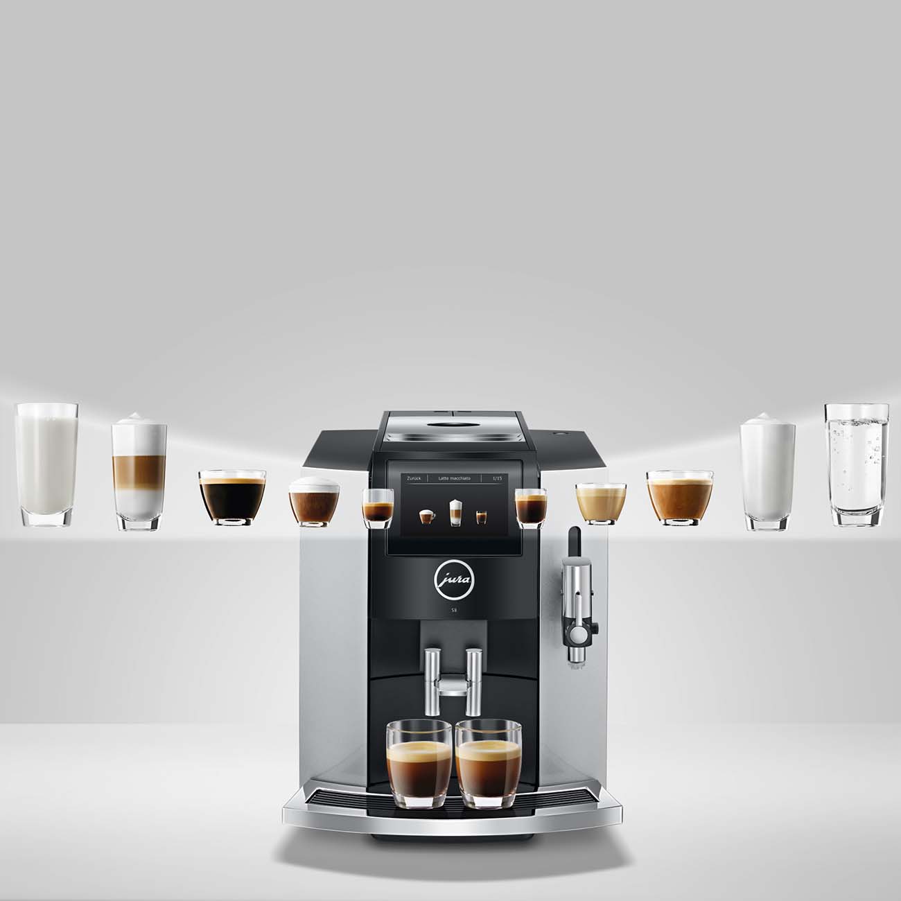 При помощи кофемашины Jura S8 вы сможете приготовить семь вариантов вкусного напитка, регулируя его крепость и температуру. Встроенная кофемолка с жерновами быстро и качественно измельчит зёрна, полностью раскрывая их аромат.