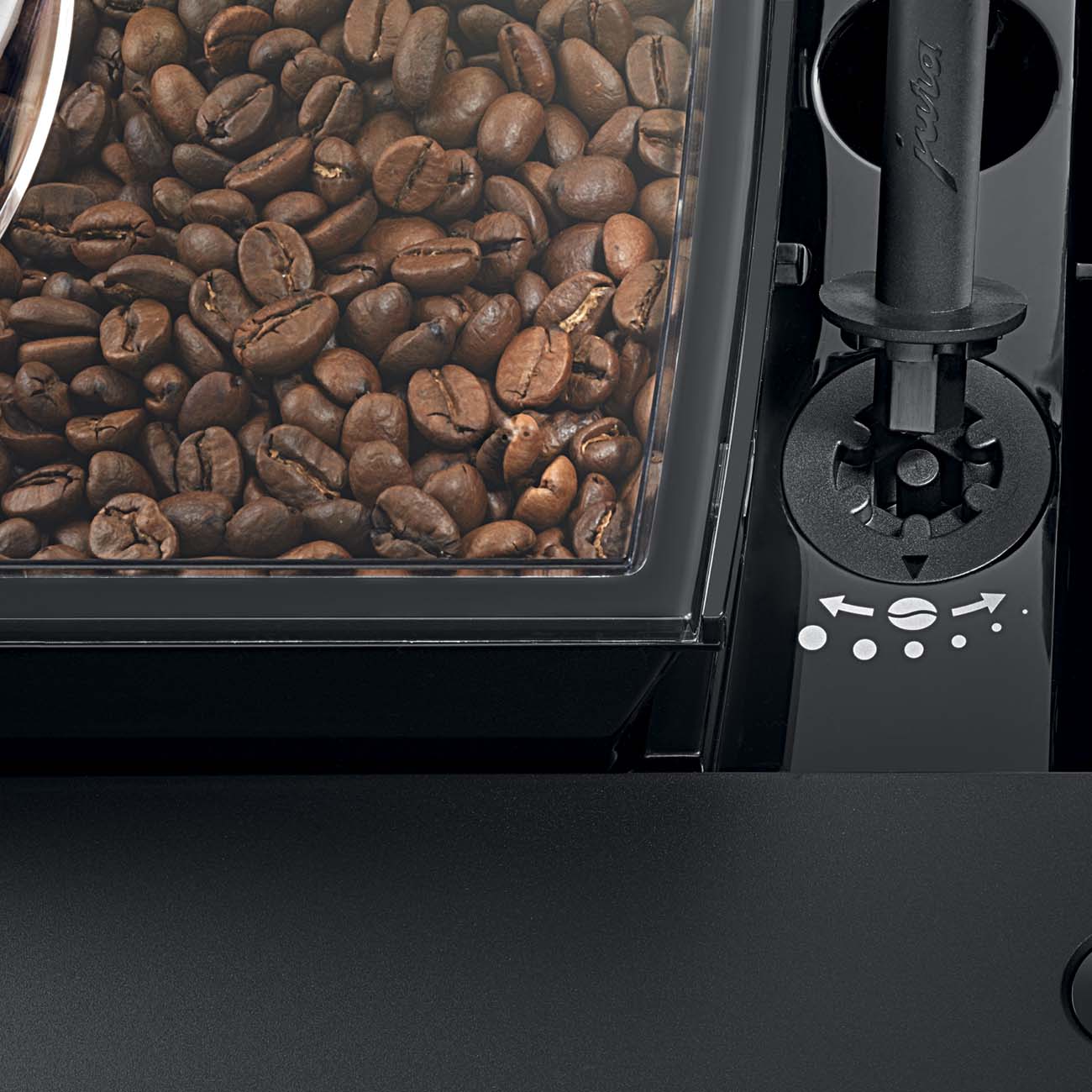 Встроенная кофемолка позволит активировать предпочтительный режим помола зёрен: всего их доступно пять. Кроме того, вы сможете установить оптимальную крепость напитка и степень нагрева воды, выбрать объём порции или наполнить сразу же две чашки: например, для себя и коллеги.