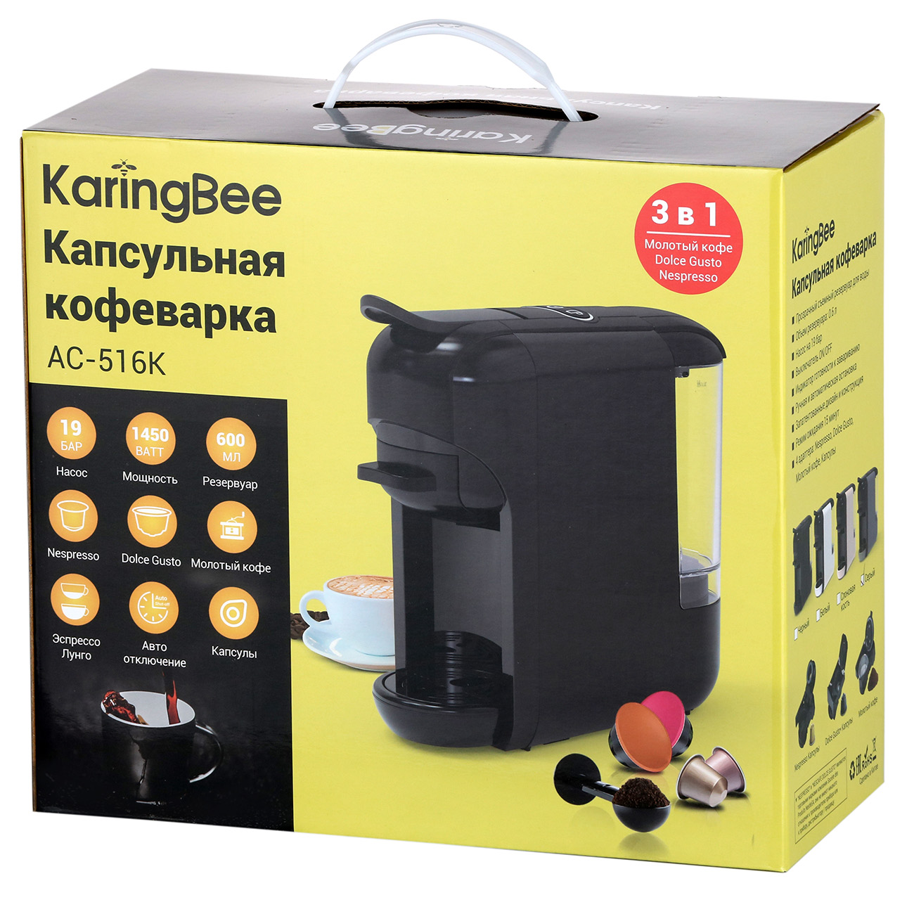 Вы можете купить Кофемашина капсульного типа Dolce Gusto KaringBee AC-516K Grey (3в1) в магазинах М.Видео по доступной цене. Кофемашина капсульного типа Dolce Gusto KaringBee AC-516K Grey (3в1): подробное описание, фото и отзывы реальных покупателей, характеристики, возможность скачать инструкции и подобрать аксессуары.