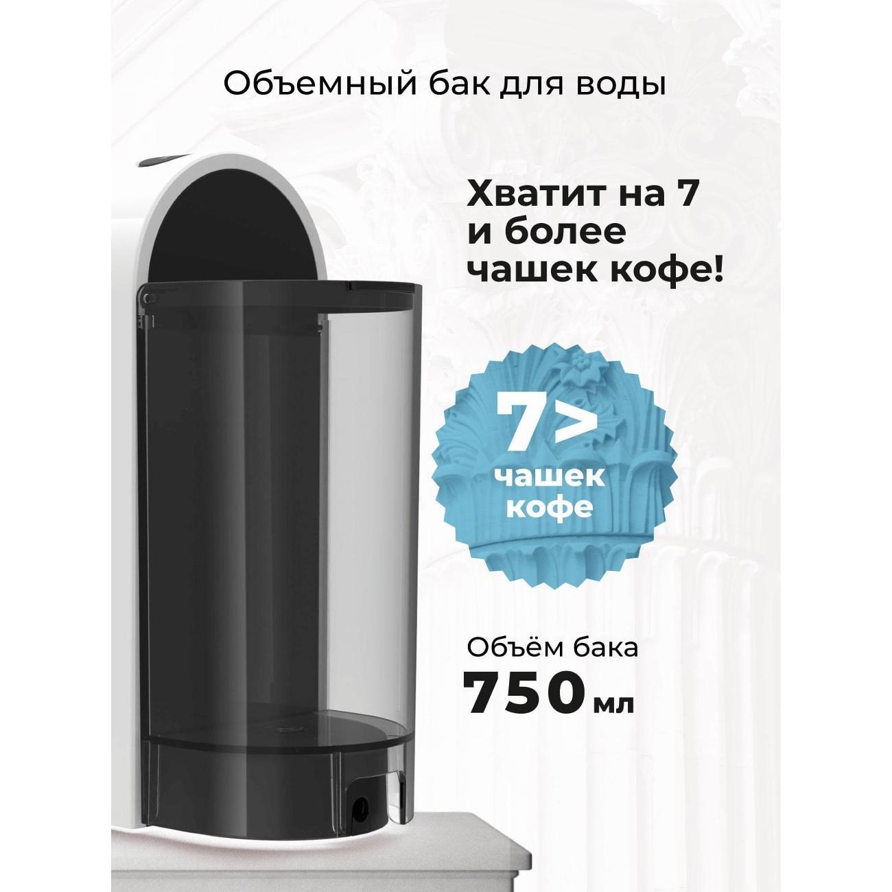 • 2 формата кофе: капсулы Nespresso + молотый: выбор между быстрым приготовлением на капсулах и использованием молотого кофе для настройки вкуса и крепости.