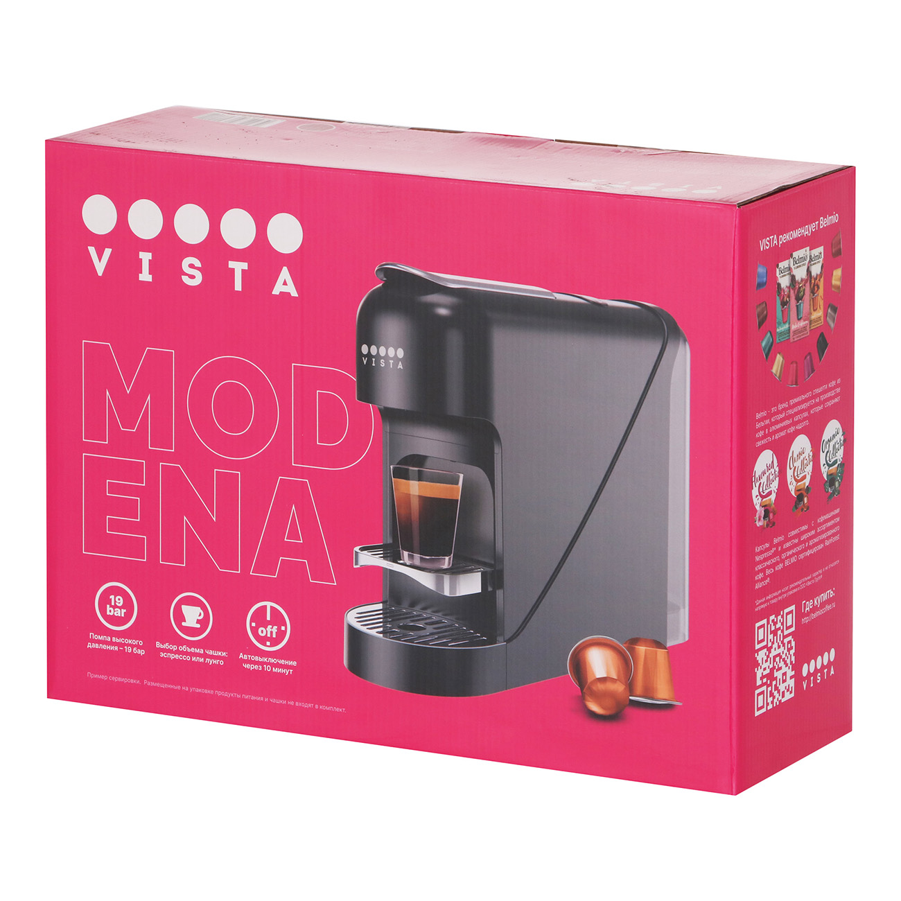 Кофемашина капсульного типа Vista Modena NS100R совместима с капсулами Nespresso и выполнена в красном цвете. Модель оснащена резервуаром для воды объемом 0,9 л и мощностью 1400 Вт, что сокращает время ожидания приготовления кофе.