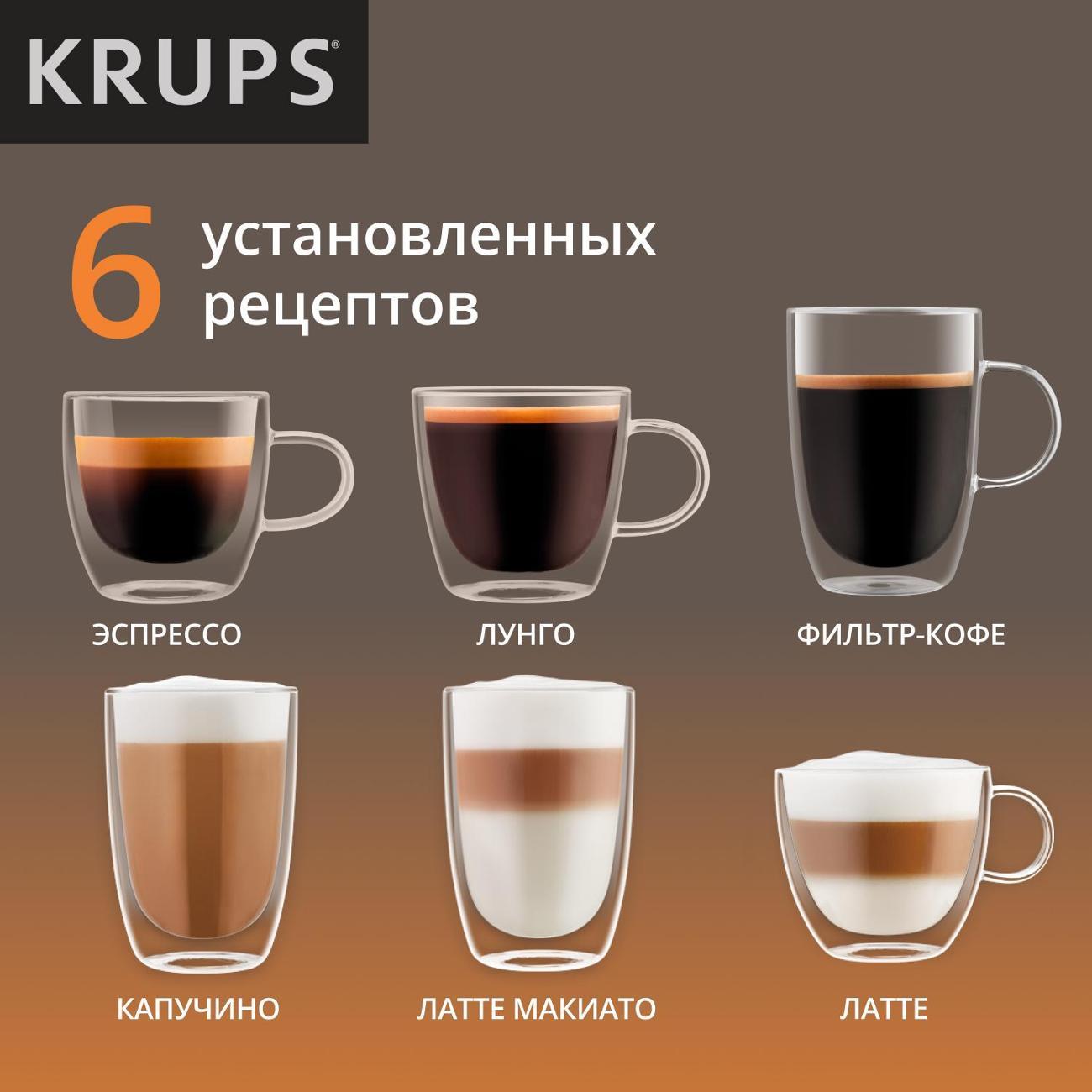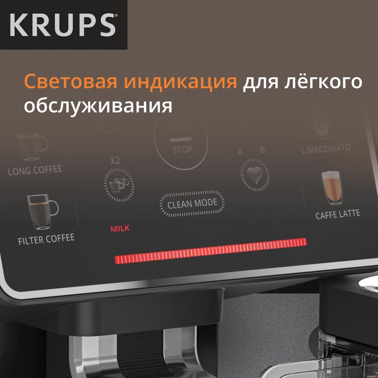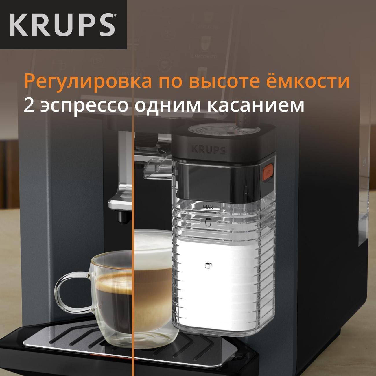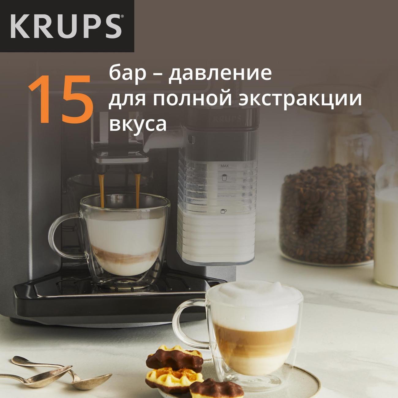Кофемашина Krups EA912B10 применяется для приготовления латте макиато, ристретто, капучино, латте, лунго и эспрессо. Полностью автоматизированный процесс запускается одним нажатием кнопки. Модель оснащена резервуаром для воды объемом 1,7 л и съемной емкостью для молока.