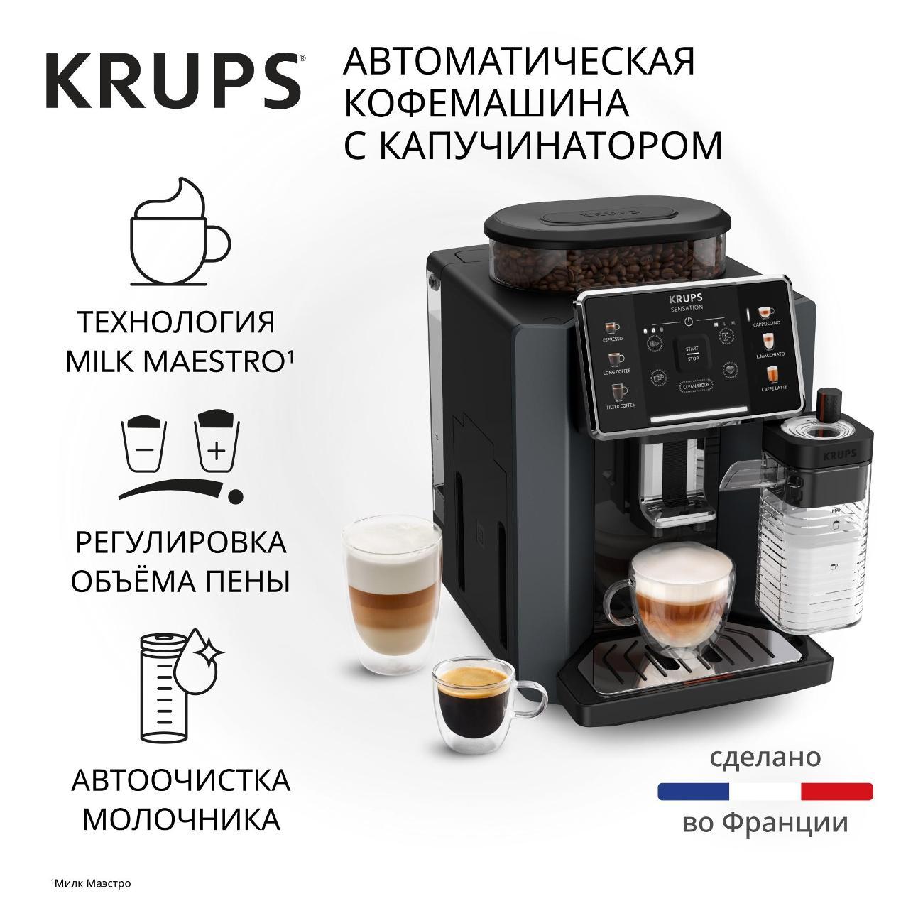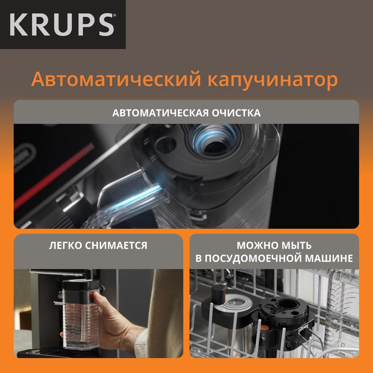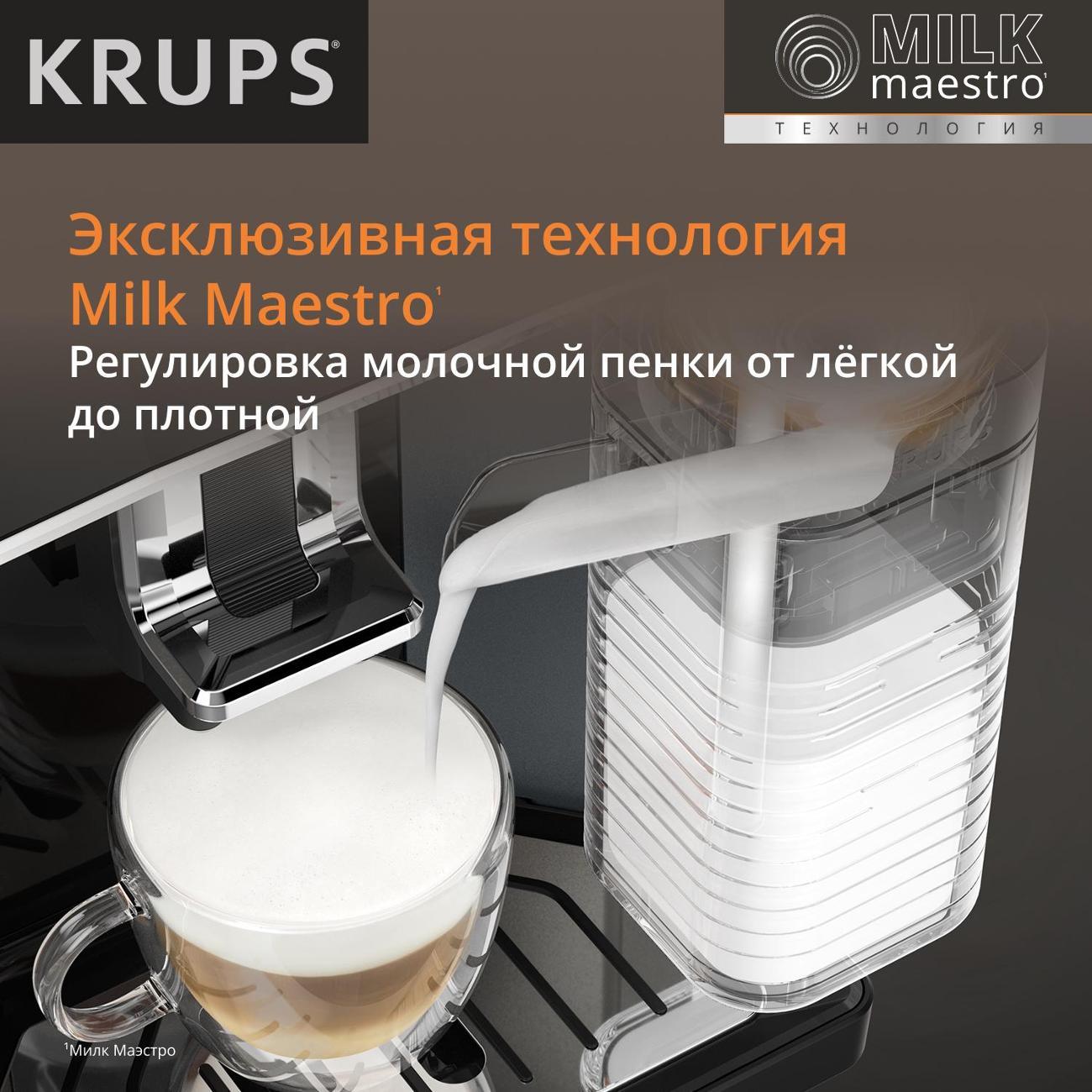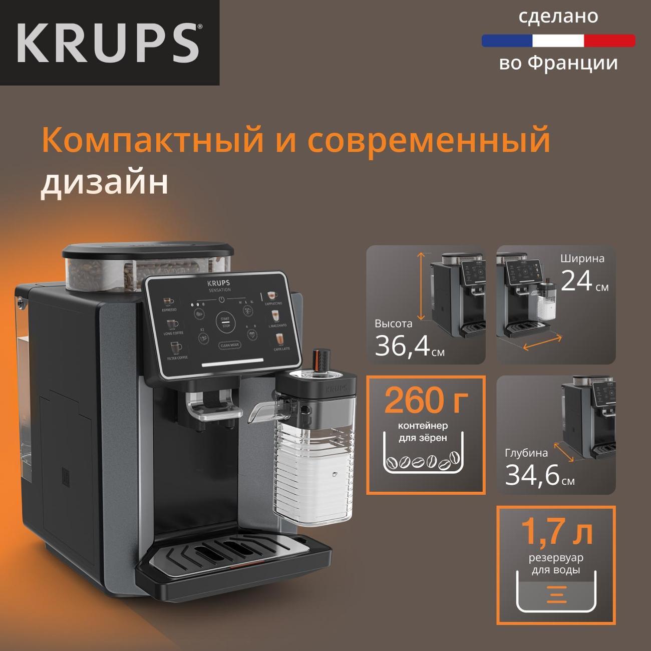 Кофемашина Krups EA912B10 применяется для приготовления латте макиато, ристретто, капучино, латте, лунго и эспрессо. Полностью автоматизированный процесс запускается одним нажатием кнопки. Модель оснащена резервуаром для воды объемом 1,7 л и съемной емкостью для молока.