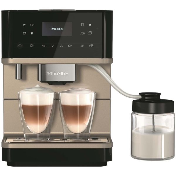 Кофемашина Miele CM6360 OBCM рассчитан на приготовление таких видов напитка, как латте, эспрессо, капучино, разные виды чая. Объем резервуара для молока рассчитан на 700 мл, для воды составляет 1,8 л. Капучинатор функционирует в автоматическом режиме — он не требует участия человека, чтобы регулировать интенсивность или количество пенки. Максимальный уровень давления составляет 15 Бар.
