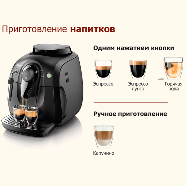 Кофемашину планировали покупать давно, с мужем готовили кофе в рожковой кофеварке крапс и решили перейти на следующий уровень. После ночи в интернете пришли в магазин, мальчик очень хорошо рассказал про кофемашину и решили взять Philips 2000. После того как начали пользоваться обнаружили, несколько весомых недостатков: 1. это маленький резервуар под воду и поддон для слива воды. Перед каждой кружкой и после машина моется, тратит пол бочка воды, иногда не хватает на налив кофе, т.к. забываешь вовремя налить воду, затем всегда полный поддон нужно вовремя слить иначе лужа на кухне обеспечена. 2. Большая кружка под американо или латте не влазит, слишком низкий носик. 3. Нельзя настроить крепость кофе, это большой недостаток!!! Большой объем получается жидким и не крепким кофе. Приходится по несколько раз готовить, что бы большой объем налить. Очень не удобно. В рожковой кофеварке кофе получался лучше. Наверно поторопились с покупкой, но увы, поздно. Покупкой не очень довольны.