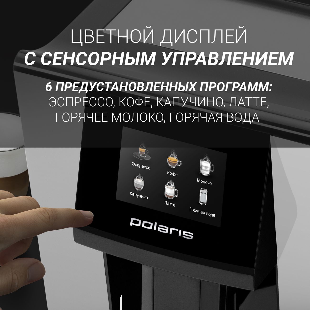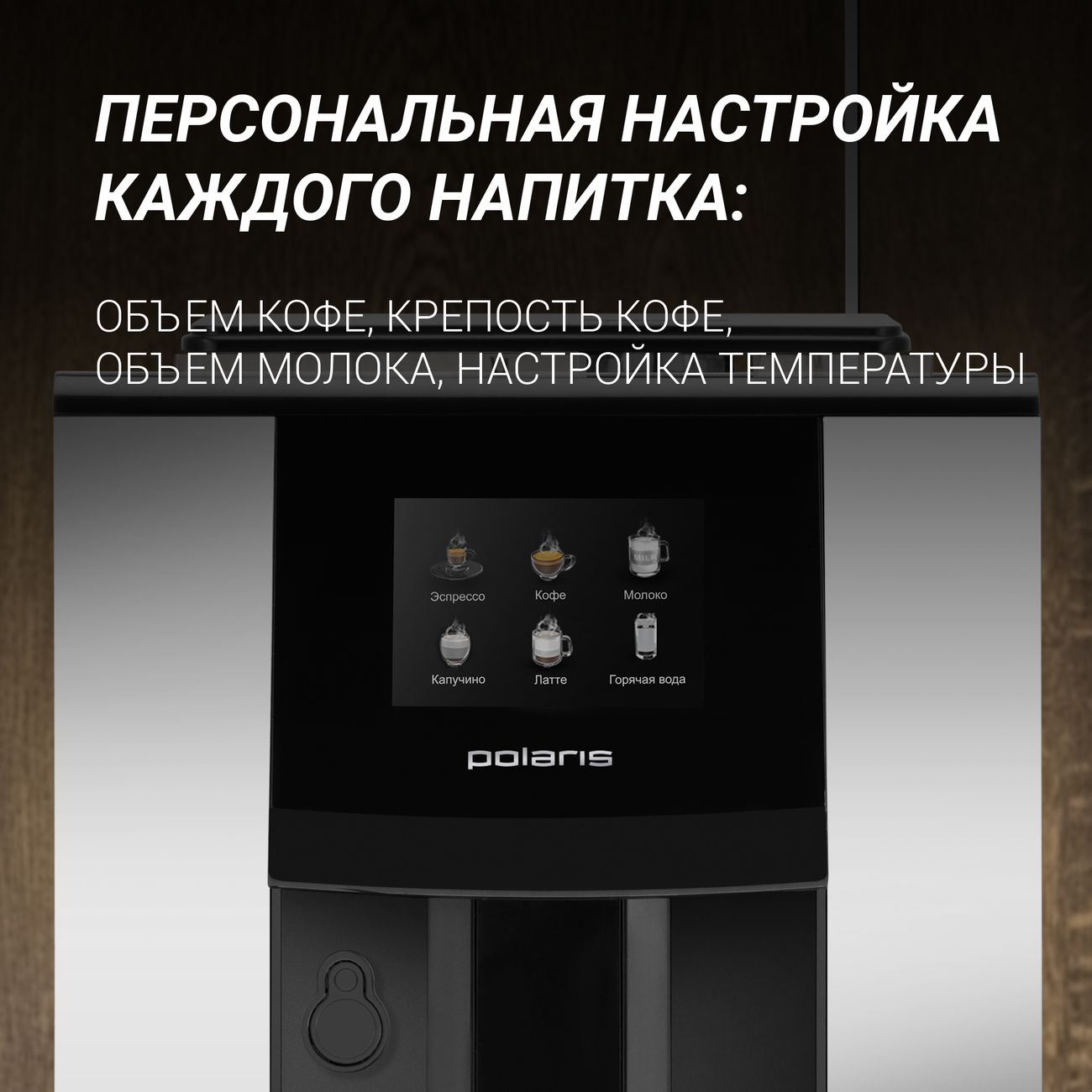 Кофемашина Polaris PACM 2065AC Black Silver потребляет до 1,5 кВт электроэнергии и рассчитана на установку чашек высотой до 14 см.