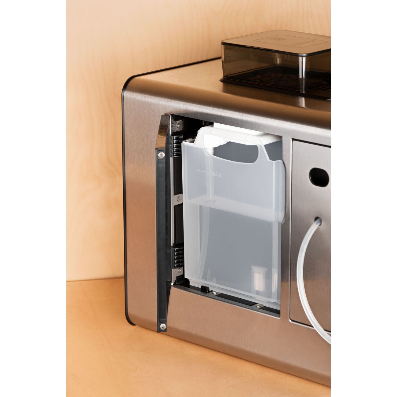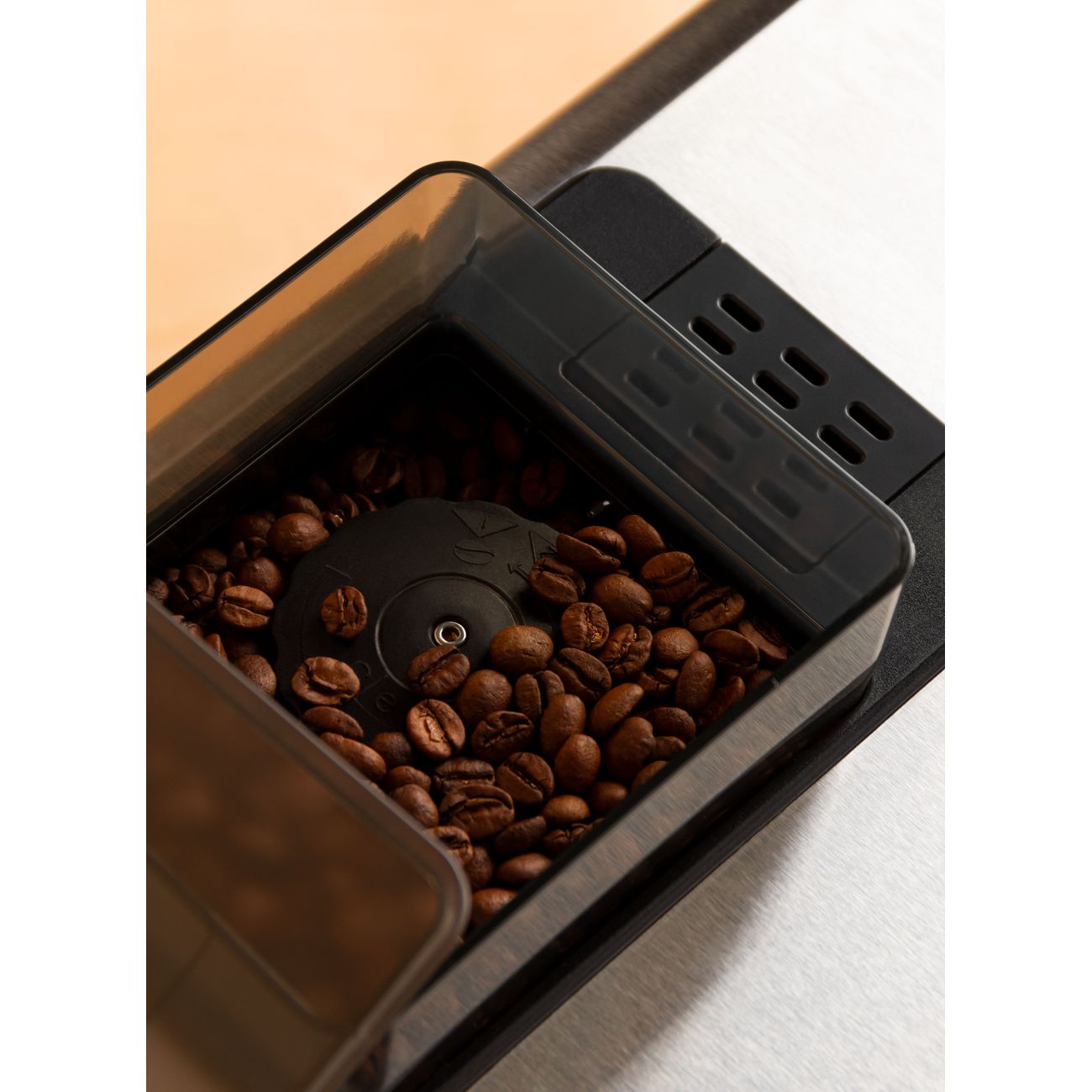 • Встроенная кофемолка с металлическими жерновами: регулируемая степень помола помогает подобрать вкус под выбранный напиток.