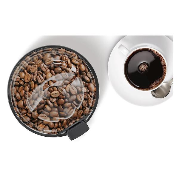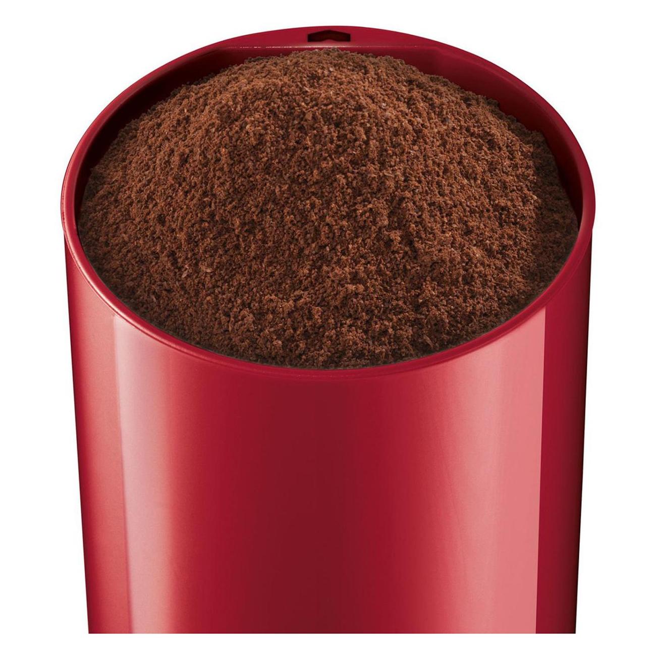 Кофемолка Bosch TSM6A014R, красная — мощное 180-ваттное устройство, которое за раз перерабатывает до 75 г зерен. Перемалывание производится ротационным ножом, выполненным из прочной и долговечной нержавеющей стали высокого качества.
