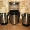 Свое предпочтение отдали этой модели, так как у нее имеется две чаши: одна для измельчения кофейных зерен (две лопасти), вторая для орехов, специй и т.п. (четыре лопасти). Плюс ко всему она металлическая.