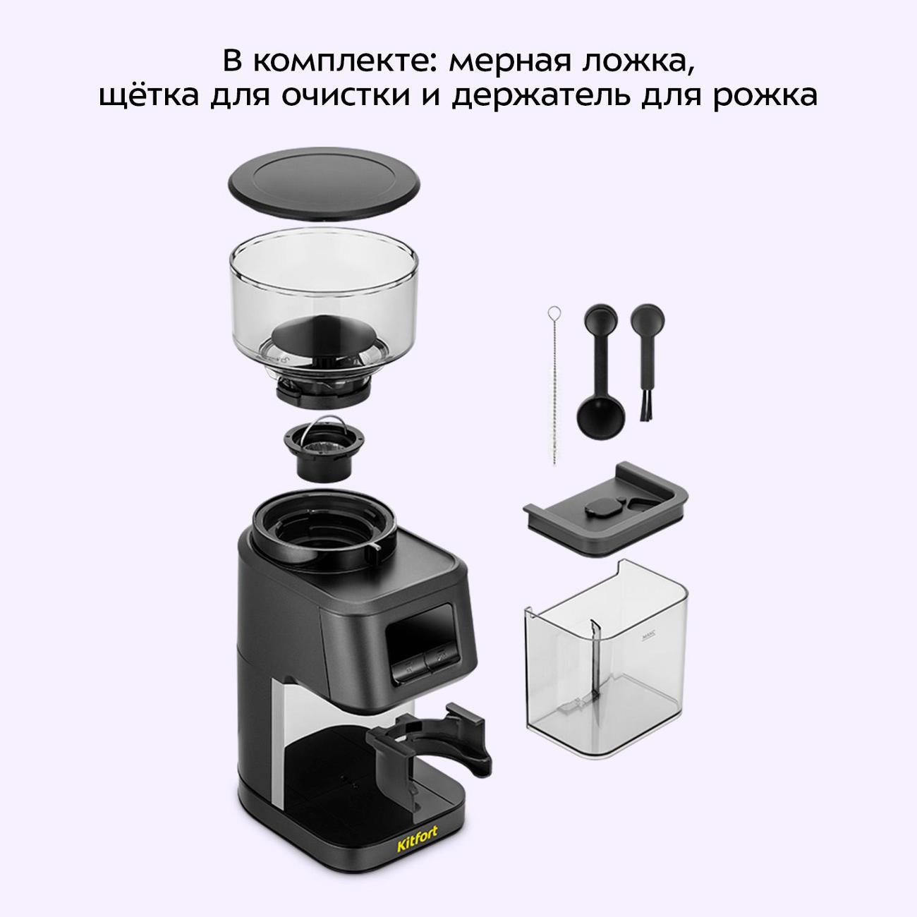 Решил перейти с ротационной на жерновую, остался на бренде Kitfort, так как предыдущая кофемолка тоже была от них и ни разу не подвела. Надеюсь, что и этой останусь доволен. Пока в пользовании немного времени, но уже можно отметить отличный дизайн, вместительную ёмкость для зёрен, удобный держатель для рожка, много уровней настройки помола. Все необходимые аксессуары есть в комплекте. Мало где указана эта информация, но для тех кто ищет кофемолку с держателем под рожок 51 мм - это подходит.