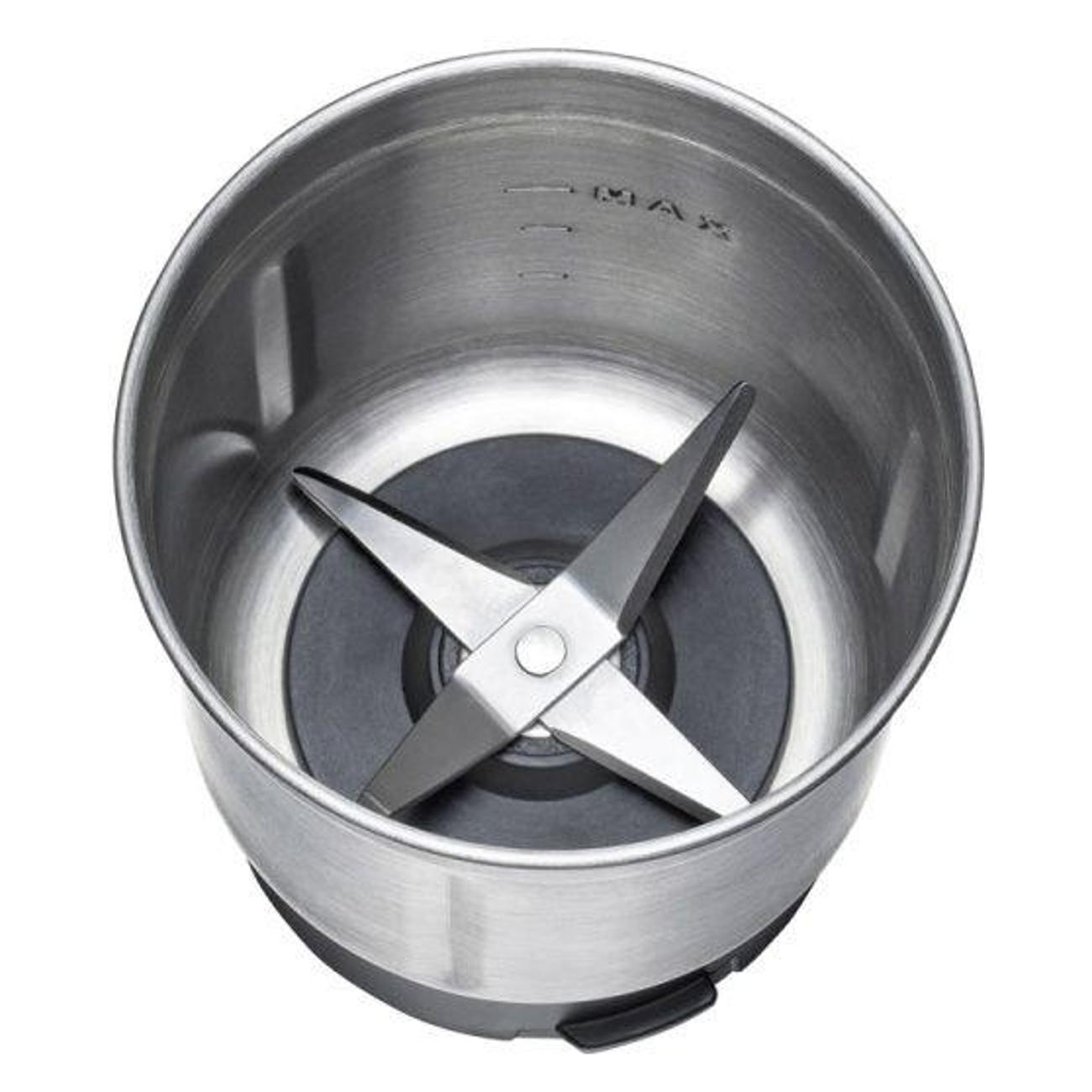 • Съёмный резервуар из нержавеющей стали: упрощает пересыпание молотого кофе и очистку после использования.