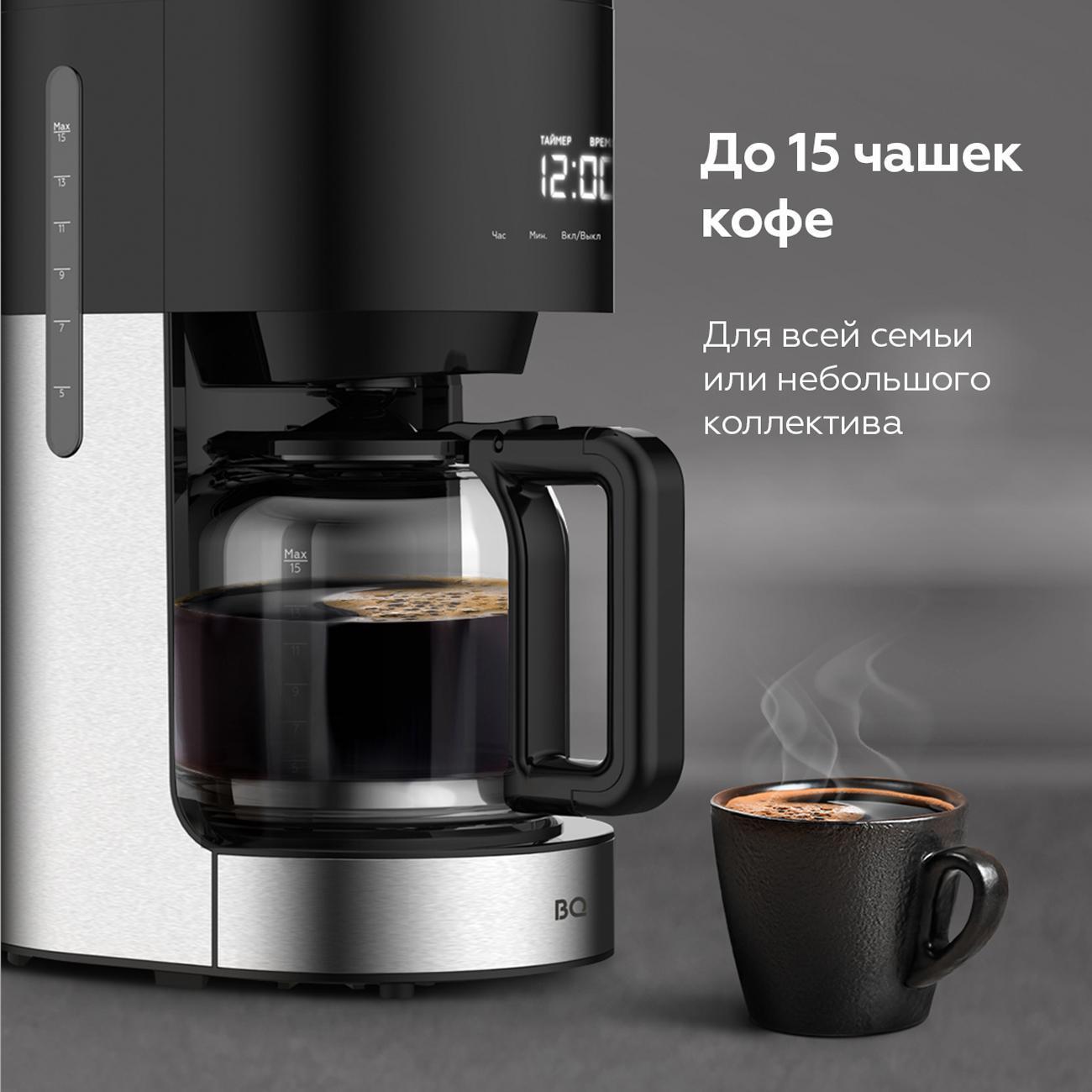 BQ CM1001 становится не только практичным, но и стильным дополнением вашей кухни благодаря современному и элегантному дизайну. Эта капельная кофеварка станет вашим надежным помощником, обеспечивая каждый день качественным кофе и комфортом во время приготовления.
