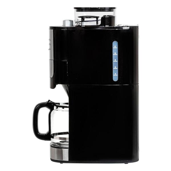 Кофеварка капельного типа JVC JK-CF31 предназначена для приготовления горячего напитка (американо, эспрессо) из молотых зерен. Модель обладает мощностью 1050 Вт, что гарантирует высокую скорость нагрева воды. Колба для зерен объемом 250 г произведена из прозрачного пластика, который дает возможность хорошо видеть содержимое и контролировать наполнение. В конструкции предусмотрено восемь степеней помола зерна. Для удобного перемещения емкости присутствует ручка эргономичной формы