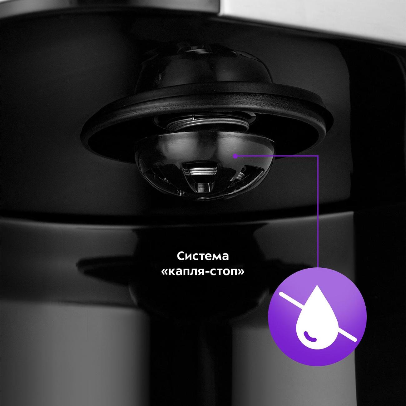 • Система защиты от капель: снижает риск проливания при извлечении колбы и помогает поддерживать чистоту.