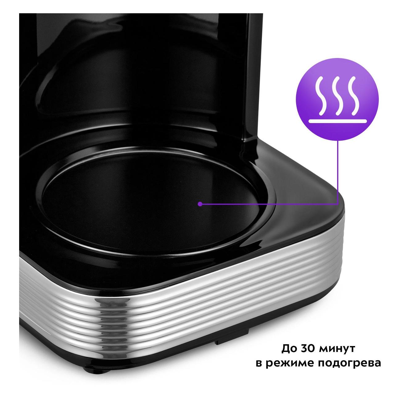 Мощность 1000 Вт обеспечивает приготовление кофе объемом до 1,5 л. В комплекте предусмотрена мерная ложка для дозирования.