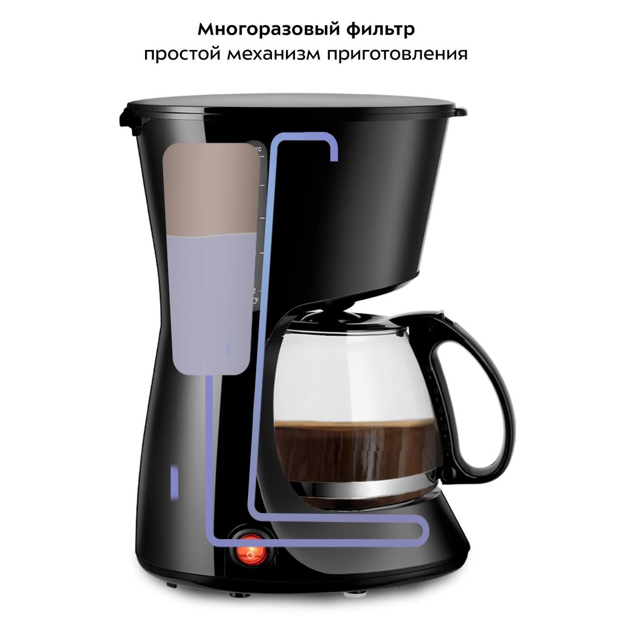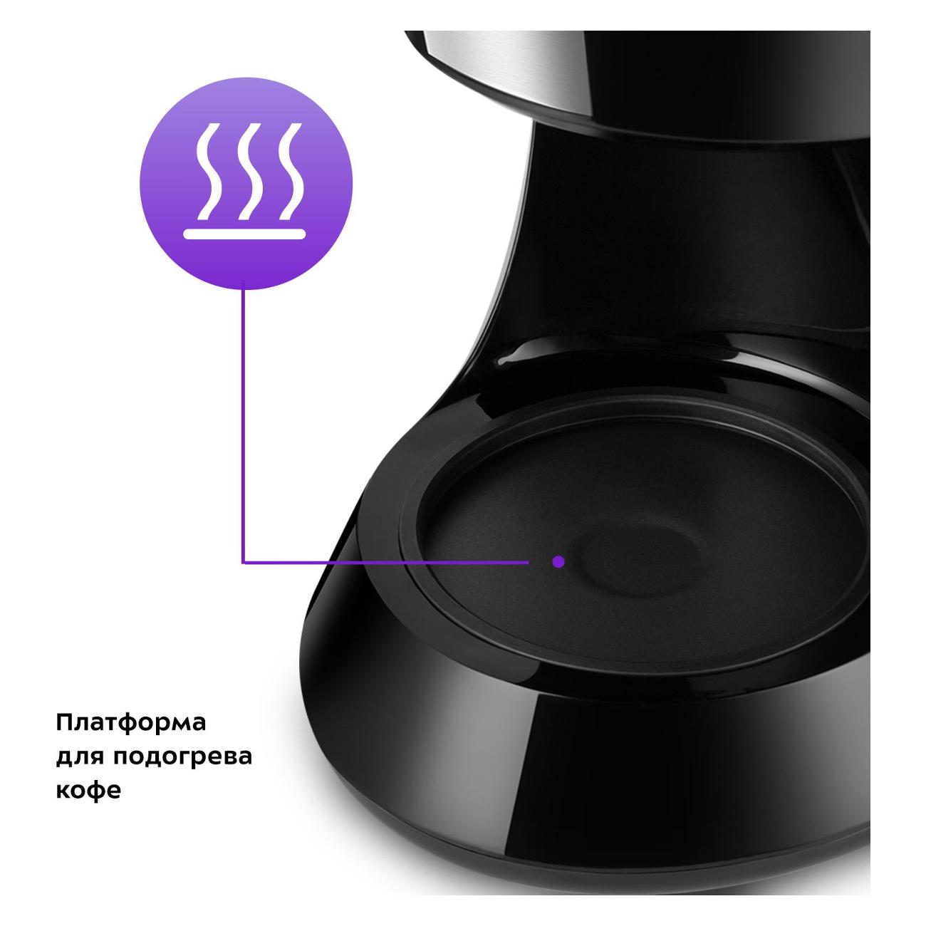 Я довольна покупкой, кофеварка стильная, компактная, был небольшой запах пластика, но прогнала несколько раз с водой и запаха практически не осталось, колба очень добротная, толстое стекло, фильтр многоразовый, но купила фильтр-пакеты, чтобы совсем не заморачиваться) варит быстро, кофе вкусный, оставляю не на долго на подогреве, чтобы был более горячий, т.к. разбавляю молоком. Оптимальный объем для меня, хотела именно небольшую, на 3 чашки самый раз!)