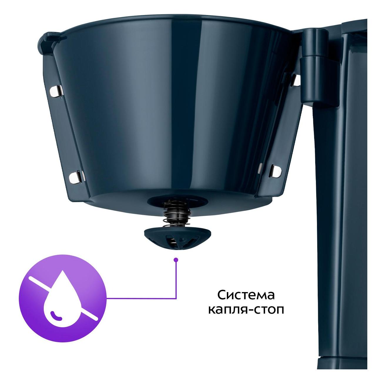 • Система защиты от капель позволяет наливать кофе во время приготовления и снижает риск проливов на подставку.