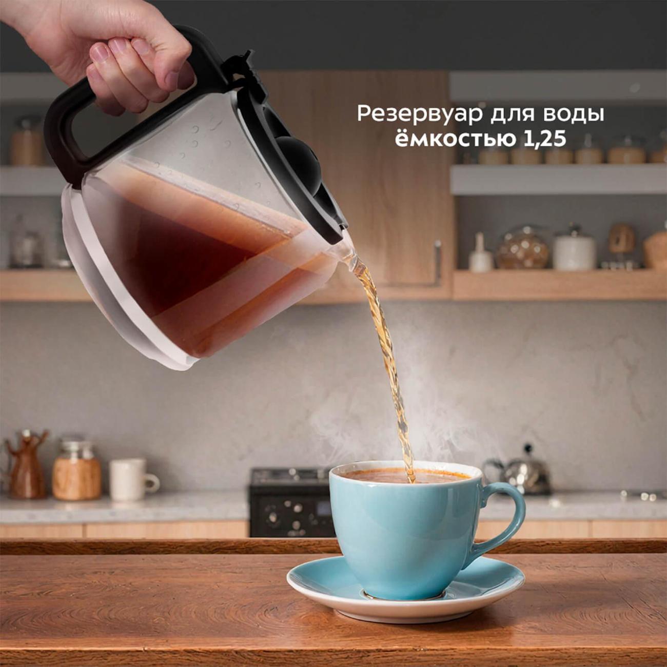 • Многоразовый нейлоновый фильтр: не требует покупки бумажных фильтров и упрощает уход за кофеваркой.
