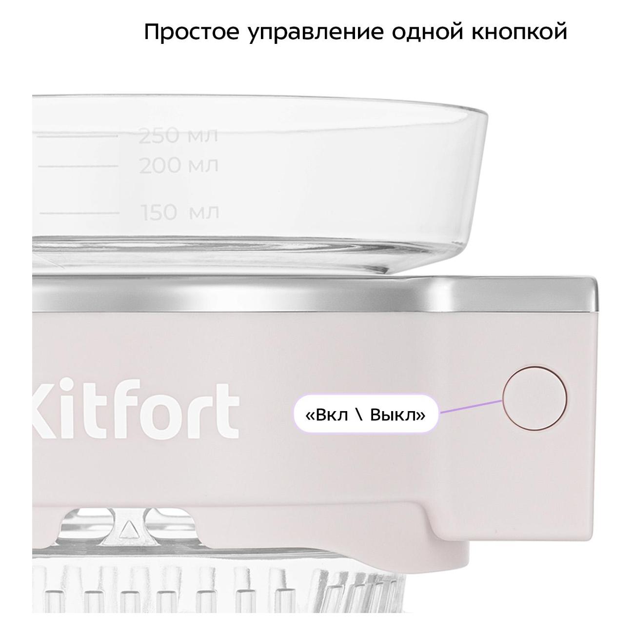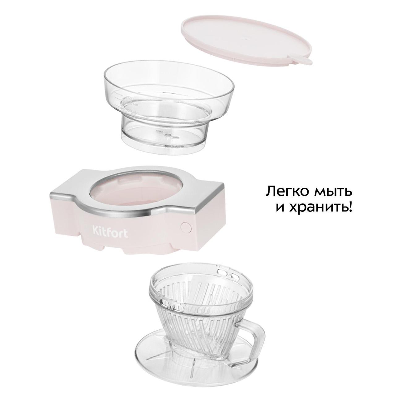 Кофеварка капельного типа Kitfort КТ-7571 белый — модель в бело-розовом пластиковом корпусе с автоматическим отключением. Кофеварка поддерживает использование кофе в капсулах и молотого.