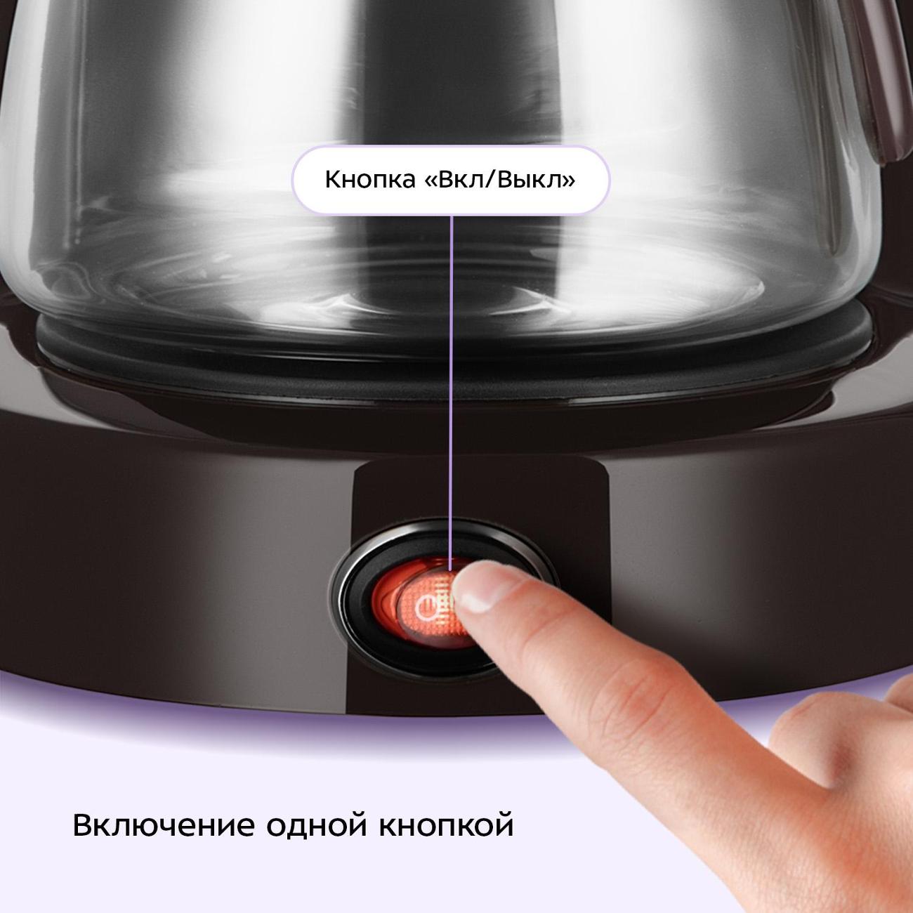 • Стеклянная колба. Позволяет визуально контролировать уровень напитка и проста в уходе.