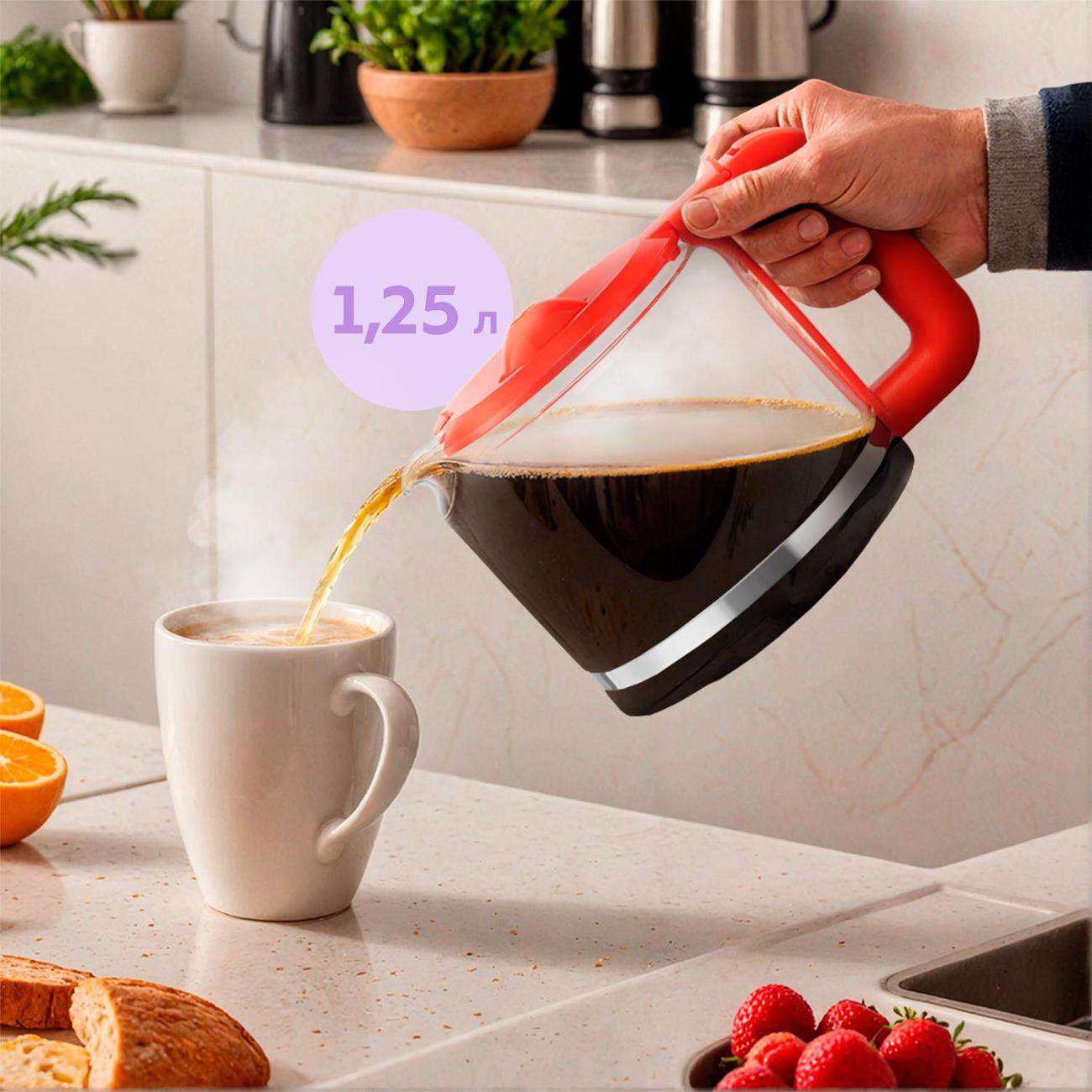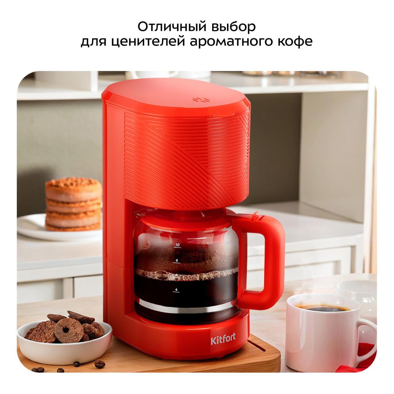 Кофеварка капельного типа Kitfort КТ-7652 с потребляемой мощностью 1080 Вт быстро готовит молотый кофе. Модель выполнена в красном цвете и оснащена стеклянной колбой объемом 1,25 л.