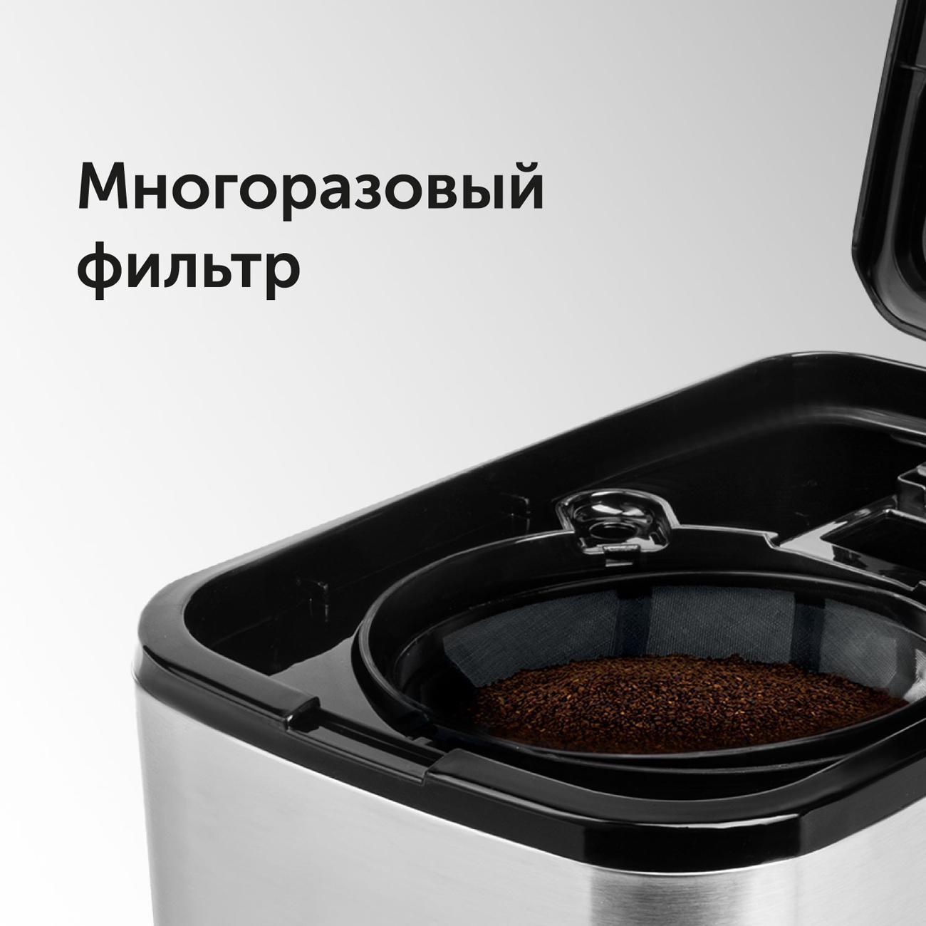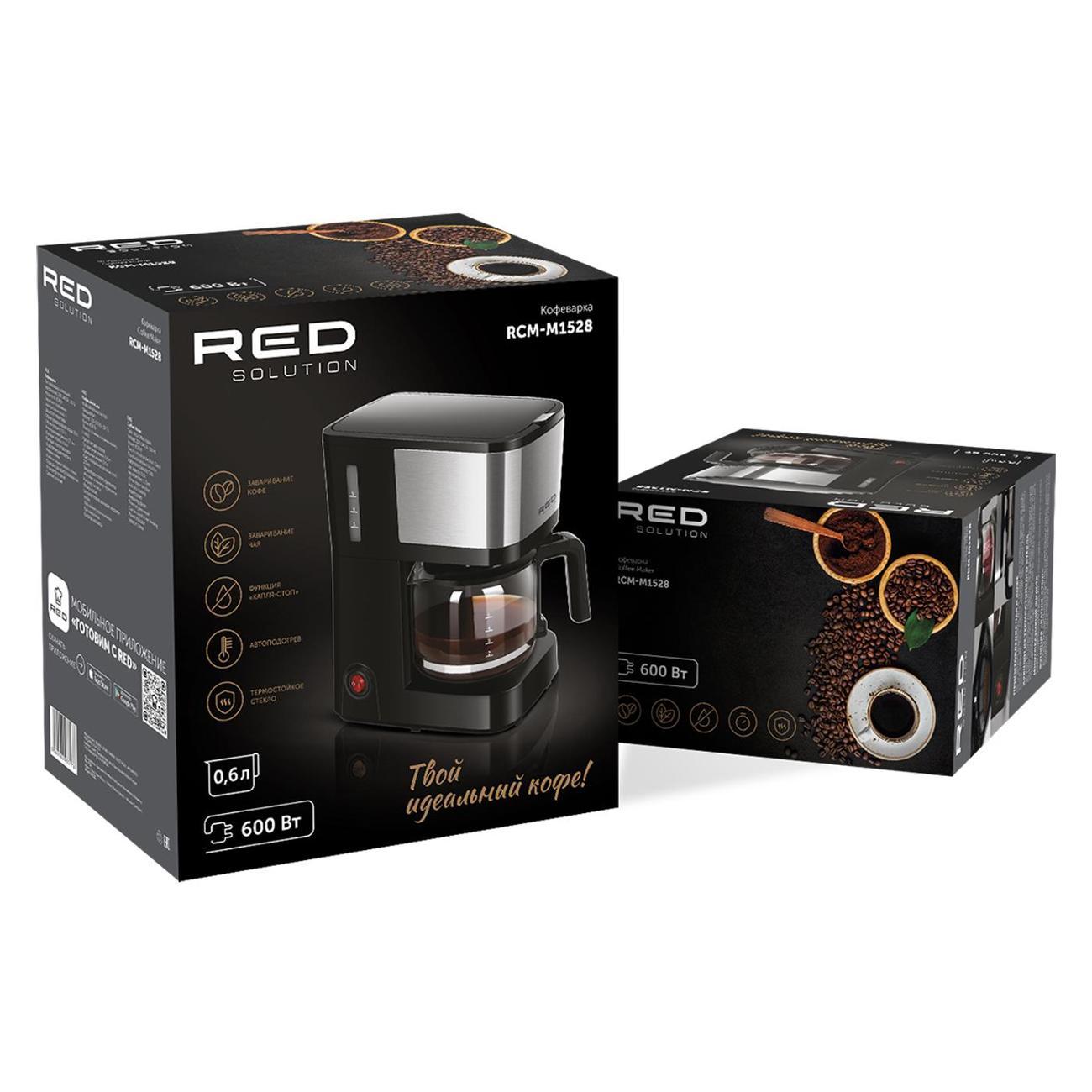 Превосходная кофеварка RED solution M1528 это капельная модель предназначенная для приготовления американо из молотого кофе, но мы в ней делаем и чай. Она оснащена термоблоком, резервуаром для воды объёмом 0,6 л и постоянным фильтром. Кофеварка имеет электронное управление, функцию подогрева колбы и устойчивые опоры
